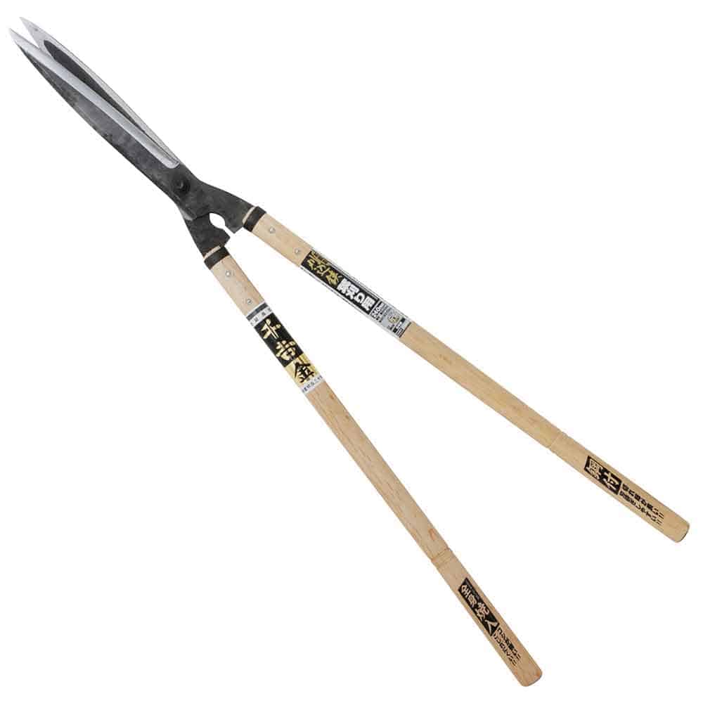 葉刈作業に最適です。 刈込鋏。 葉刈り作業用です。 ●全長:約840mm。 ●刃長:約240mm。 ●切り刃:約210mm。 ●生木切断能力:5mm。