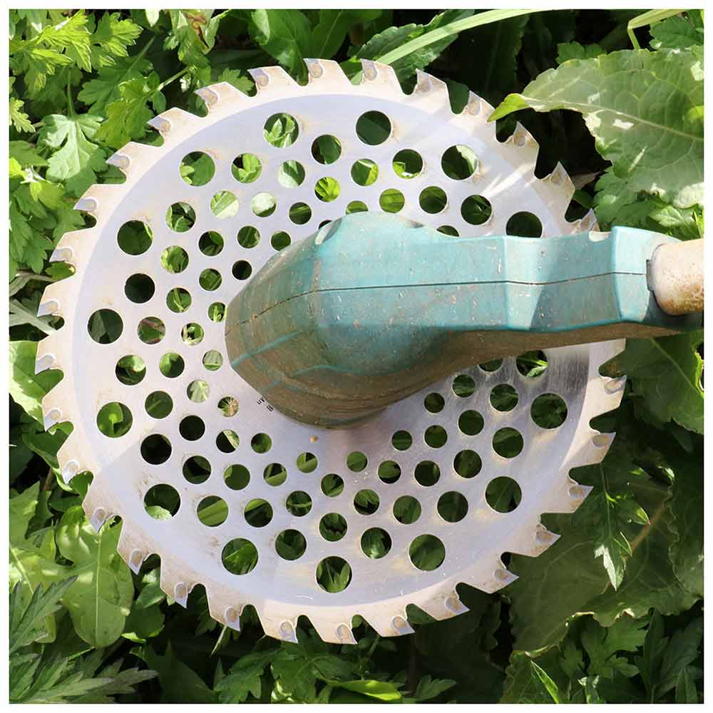 石、缶、ビン、電線等の硬質異物にチップソーが当たらないように、作業はそれら硬質異物を避けるように充分注意して行って下さい。チップソー回転数はチップソーがもし硬質異物に当たった時の衝撃による破損を少しでも少なくするために毎分6000回転以下で使用して下さい。高速回転は危険です。 安全のため激しい衝撃を加えない様に作業を行って下さい。作業中にチップソーの異常な振動又は衝撃を感じたら直ちに刈払機のエンジンを停止してチップソーのヒビ割れ等の確認をして下さい。チップソーの異常を発見したら、そのチップソーは絶対に継続使用しないで下さい。 作業終了時にはエンジンを停めチップソーを刈払機から取り外してチップソーにヒビ割れ、変形、摩耗等の異常が無いか点検確認して下さい。もしヒビ割れ、変形等の異常の場合は絶対に再使用せずに破棄して下さい。摩耗の場合は清掃の上で適切な目立てをして下さい。次回使用のために防錆油等で防錆処理の後に幼児の手の届かない安全な場所に保管してください。