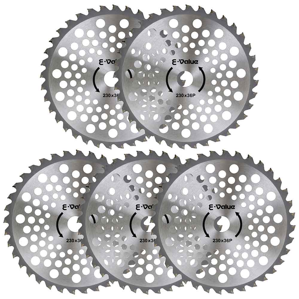 軽量タイプで刈払作業の負担を減らします。 草刈り作業。 強力斜め埋め込みのため耐久性抜群です。 刃先全面研磨により切れ味抜群です。 ●外径:230mm。 ●刃数:36P。 ●刃厚:2.0mm。 ●穴径:25.4mm。 ●刈払機推奨排気量:25cc未満。 ●5枚組。