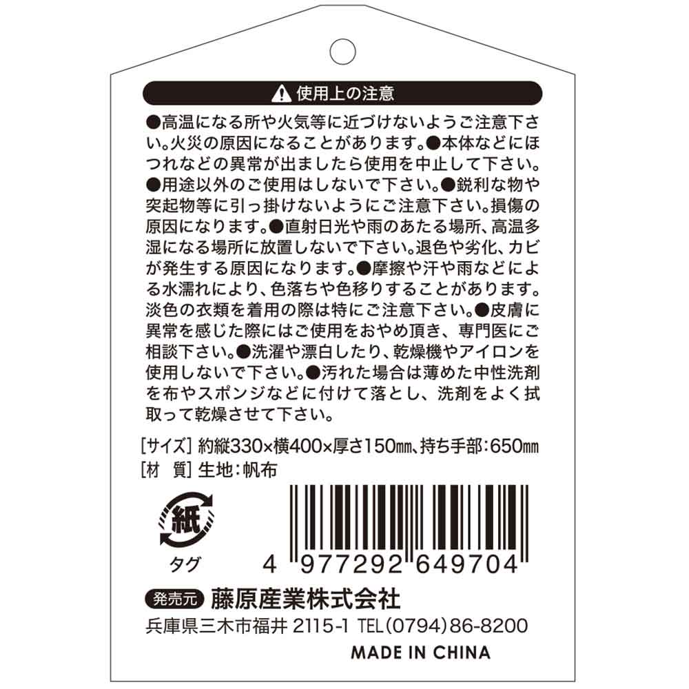 高温になる所や火気等に近づけないようご注意ください。火災の原因になることがあります。 本体などにほつれなどの異常が出ましたら仕様を中止してください。 用途以外のご使用はしないでください。汚れた場合は薄めた中性洗剤を布やスポンジなどに付けて落とし、洗剤をよく拭取って乾燥させてください。