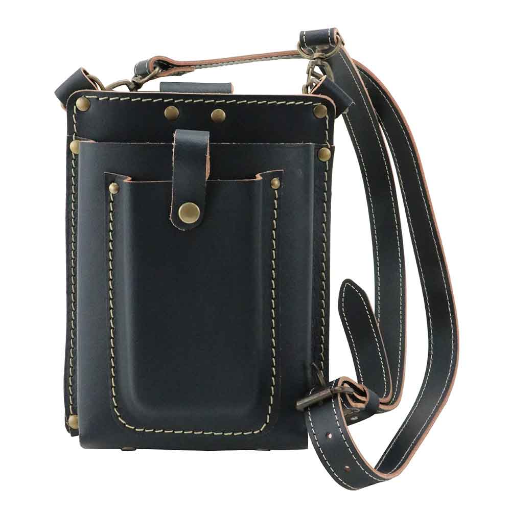 道具や小物をおしゃれに収納できるポーチです。 園芸道具や小物、携帯電話の収納・持運びポーチ。 シンプルなボックス型デザインで素材に拘ったカジュアルシザーケースです。 剪定バサミ、結束タイ、カッター、ペン、スマホなど様々なものが収納可能です。 天然の牛革使用で丈夫で長持ちです。 好みに合わせたスタイルが可能な長さ調整具付きです。 ●サイズ:約縦220mm×横170mm×厚さ90mm。 ●ベルト最長:約1250mm。 ●カラー:ネイビー。