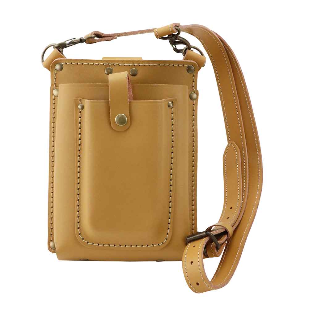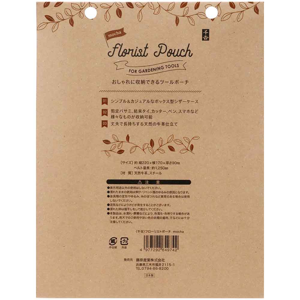 道具や小物をおしゃれに収納できるポーチです。 園芸道具や小物、携帯電話の収納・持運びポーチ。 シンプルなボックス型デザインで素材に拘ったカジュアルシザーケースです。 剪定バサミ、結束タイ、カッター、ペン、スマホなど様々なものが収納可能です。 天然の牛革使用で丈夫で長持ちです。 好みに合わせたスタイルが可能な長さ調整具付きです。 ●サイズ:約縦220mm×横170mm×厚さ90mm。 ●ベルト最長:約1250mm。 ●カラー:モカ。