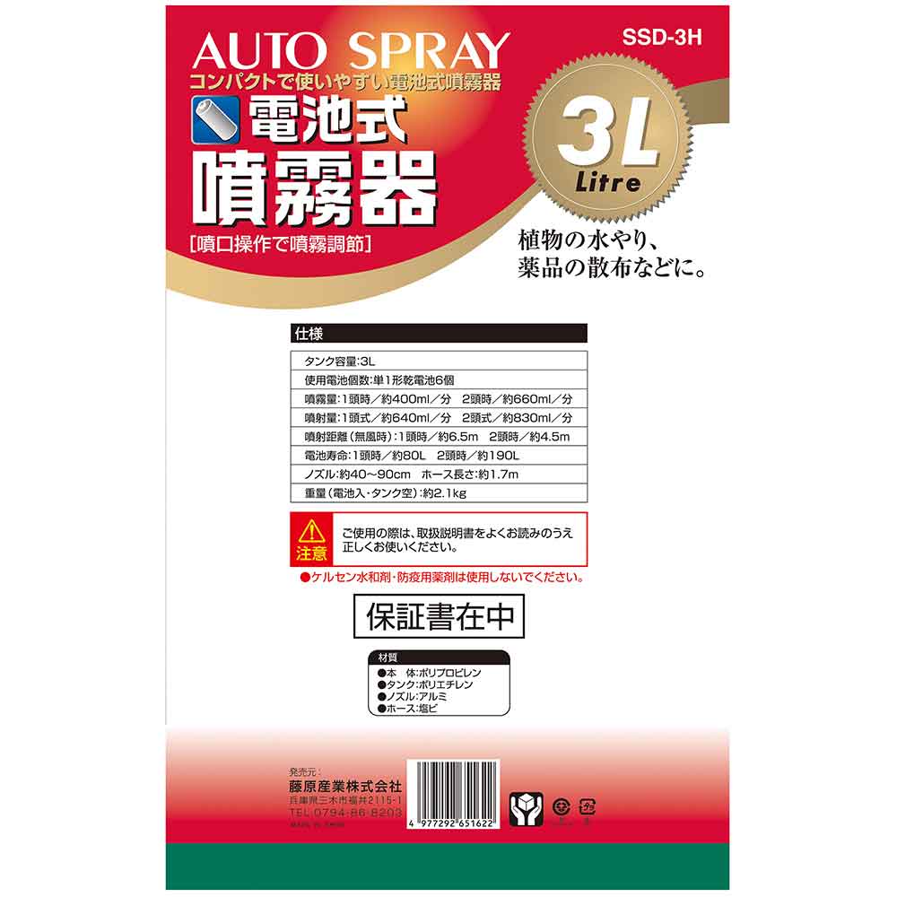 セフティ-3 藤原産業株式会社 園芸機器 噴霧器 電池式噴霧器