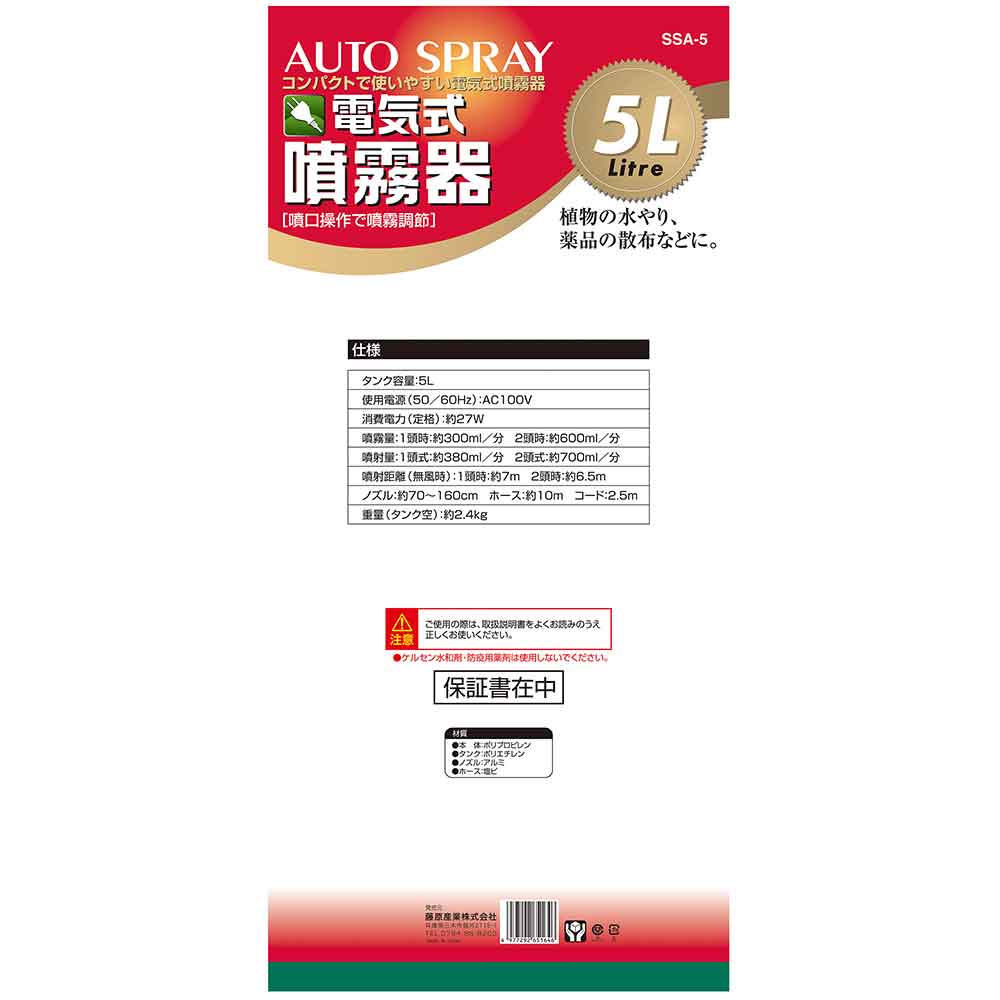 セフティ-3 藤原産業株式会社 園芸機器 噴霧器 電気式噴霧器