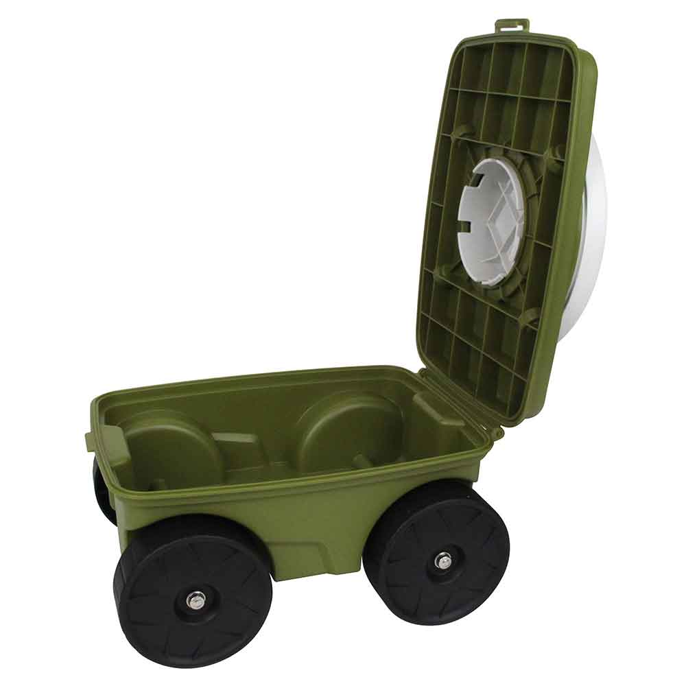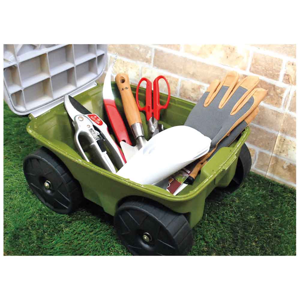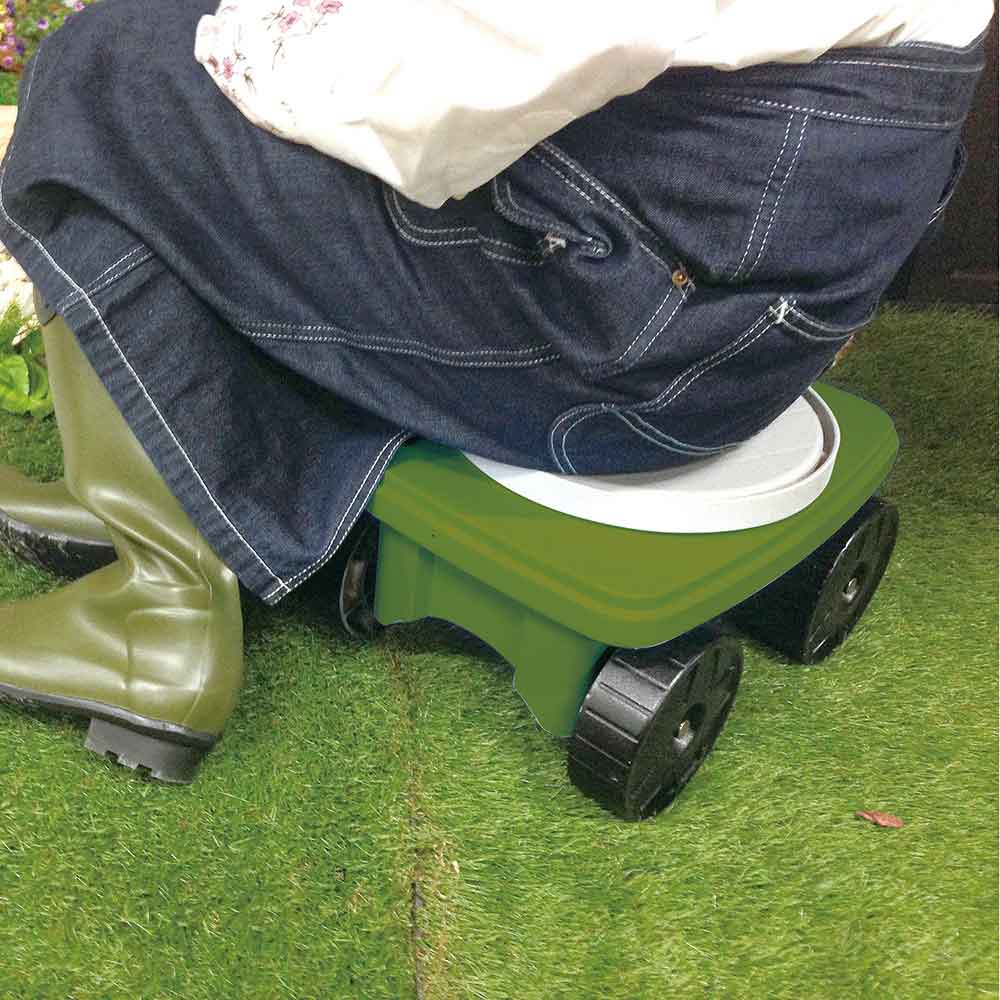 つらかった中腰作業が楽になる、庭仕事の必需品です。 タイヤ付き作業椅子(収納機能付き)。 便利な収納スペース付きです。 座部が360度回転します。 タイヤ付きで、作業・移動が楽にできます。 長時間の作業も楽々です。 農作業・草取り等の作業時に最適です。 ●耐荷重:約100kg。 ●サイズ(約):375×200×260mm。 ●重量(約):2.3kg。