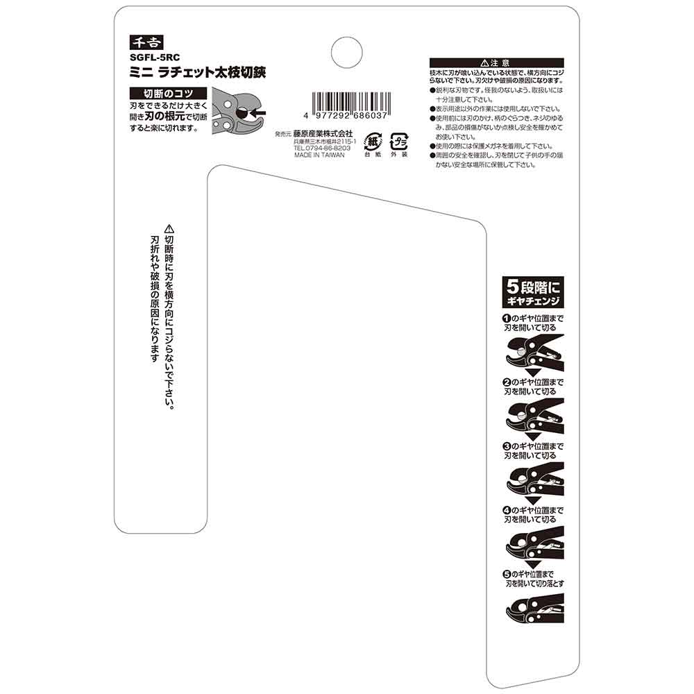 枝木に刃が喰い込んでいる状態で、横方向にコジらないで下さい。刃欠けや破損の原因になります。 鋭利な刃物です。怪我のないよう、取扱いには十分注意して下さい。 表示用途以外の作業には使用しないで下さい。