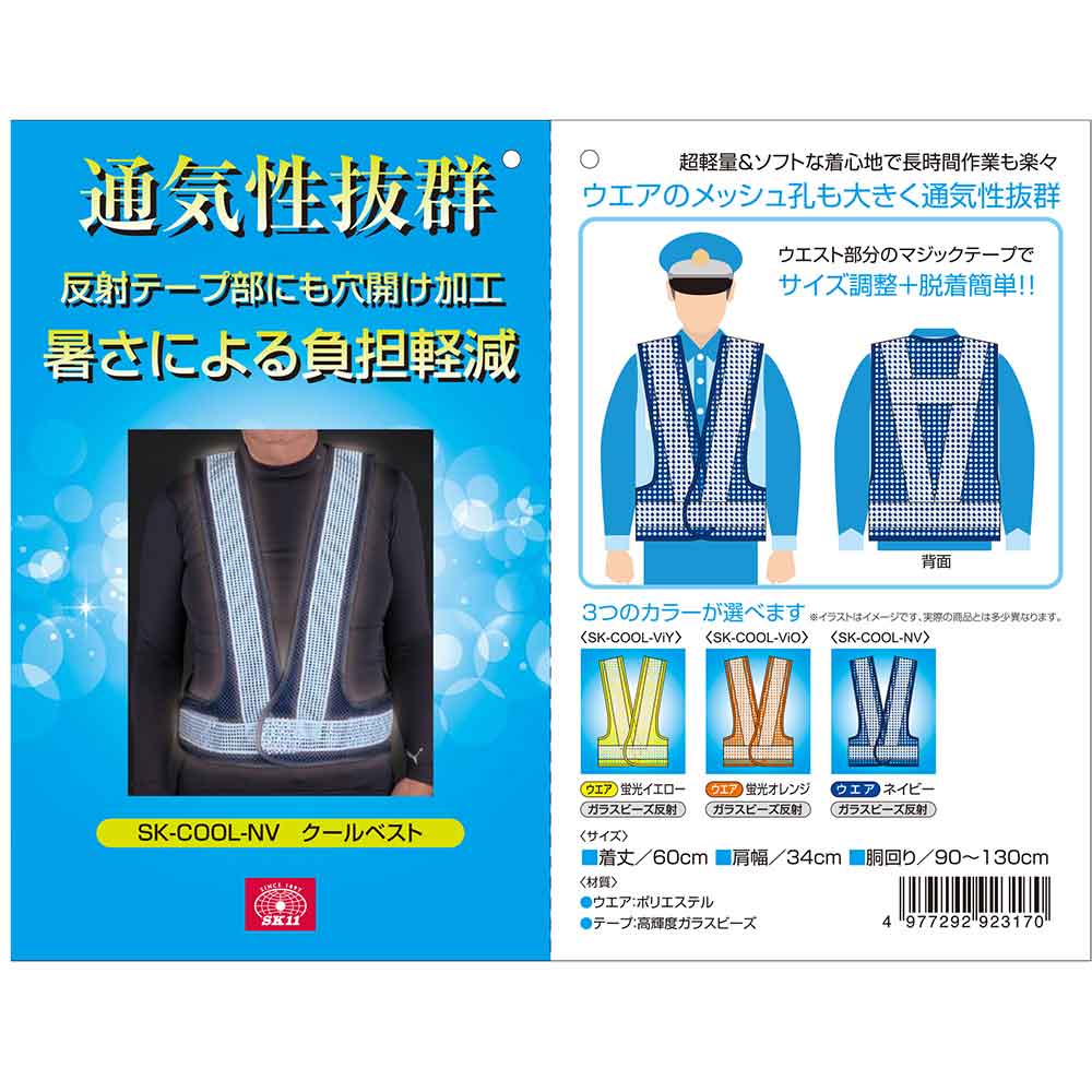 通気性を高め、厚さによる負担を軽減し作業が行える反射ベストです。 工事現場、建築現場、交通警備、パトロール、防災訓練時に着用。 超軽量でソフトな着心地で長時間作業の負担を軽減します。 ウエアのメッシュ孔も大きく通気性が抜群です。 高視認ウエアと高輝度ガラスビーズで昼夜を問わず視認性が高いです。 ウエスト部分がマジックテープなので、サイズの調整と着脱が簡単に行えます。 ●サイズ:着丈60cm・肩幅34cm・胴回り90~130cm。 ●色:ネイビー。
