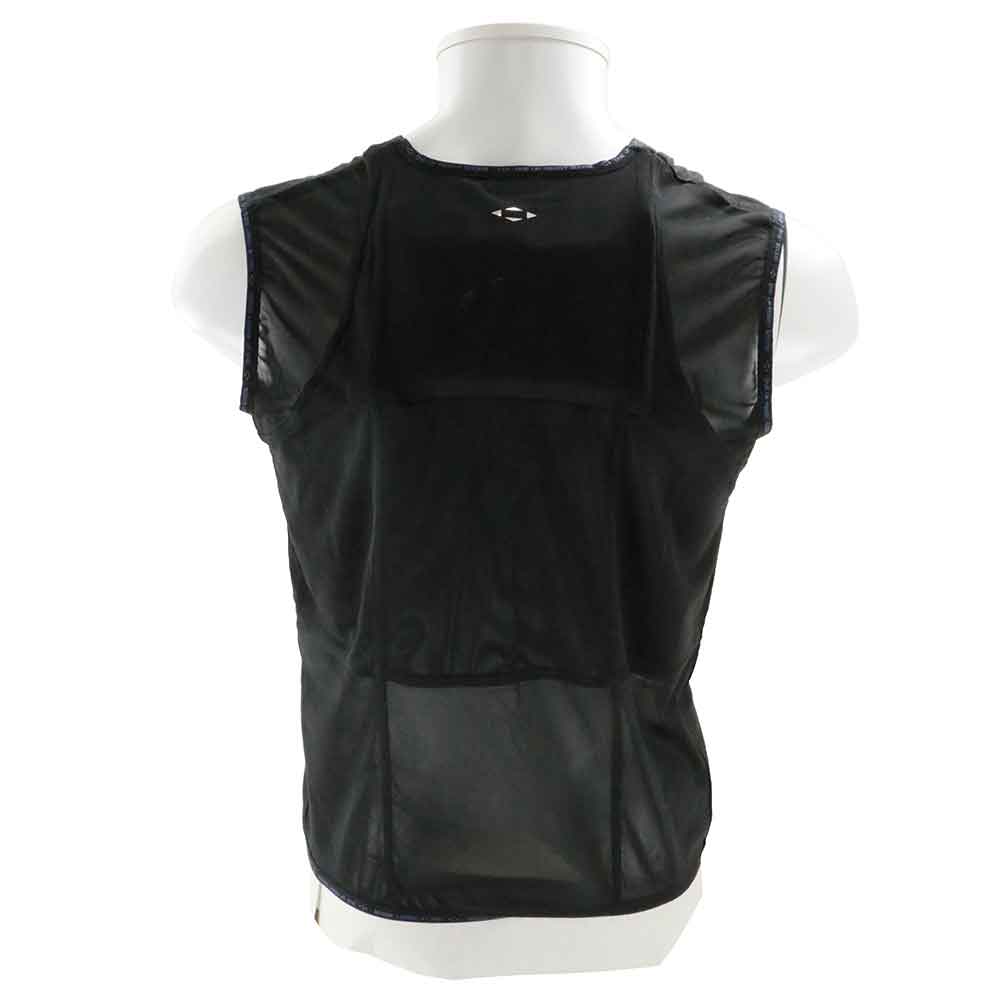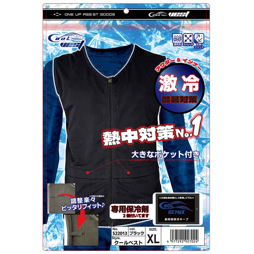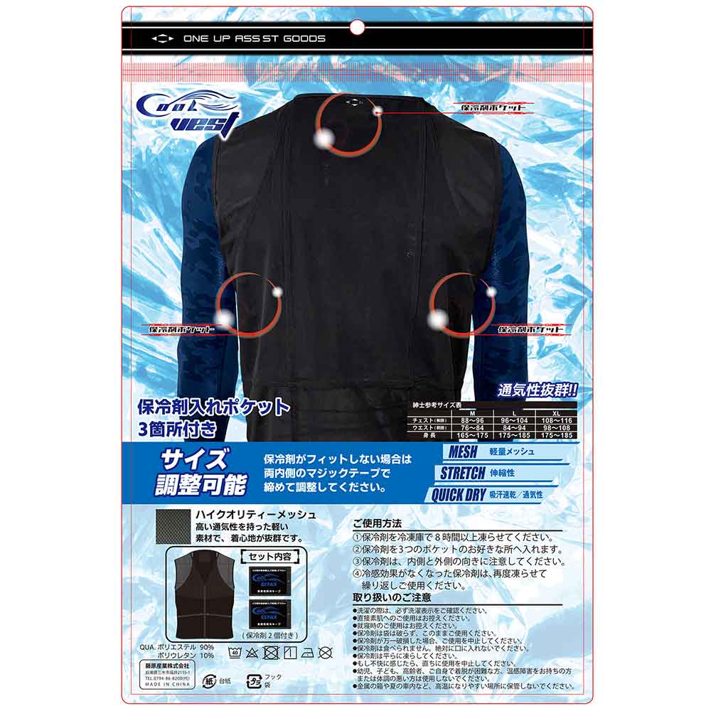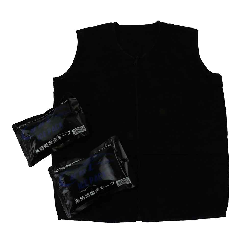 通気性抜群なので、インナーにもアウターにもおススメのクールベストです。 暑さ対策ベスト。 保冷剤ポケット3カ所で酷暑対策インナー&アウターベストです。 保冷剤をポケット3カ所で使用することで酷暑対策でき、インナー&アウターベスト空調服の中へインナーとすればクーラー代わりになります。 高い通気性を持った軽い素材で、着心地が抜群なハイクオリティーメッシュです。 大容量のポケット付きです。 両脇に消臭テープが付いています。 ●カラー:ブラック。 ●サイズ:XL。 ●身長:175~185cm。 ●胸囲:108~116cm。 ●保冷剤2個付き。 ●ワンポイント反射プリント付。