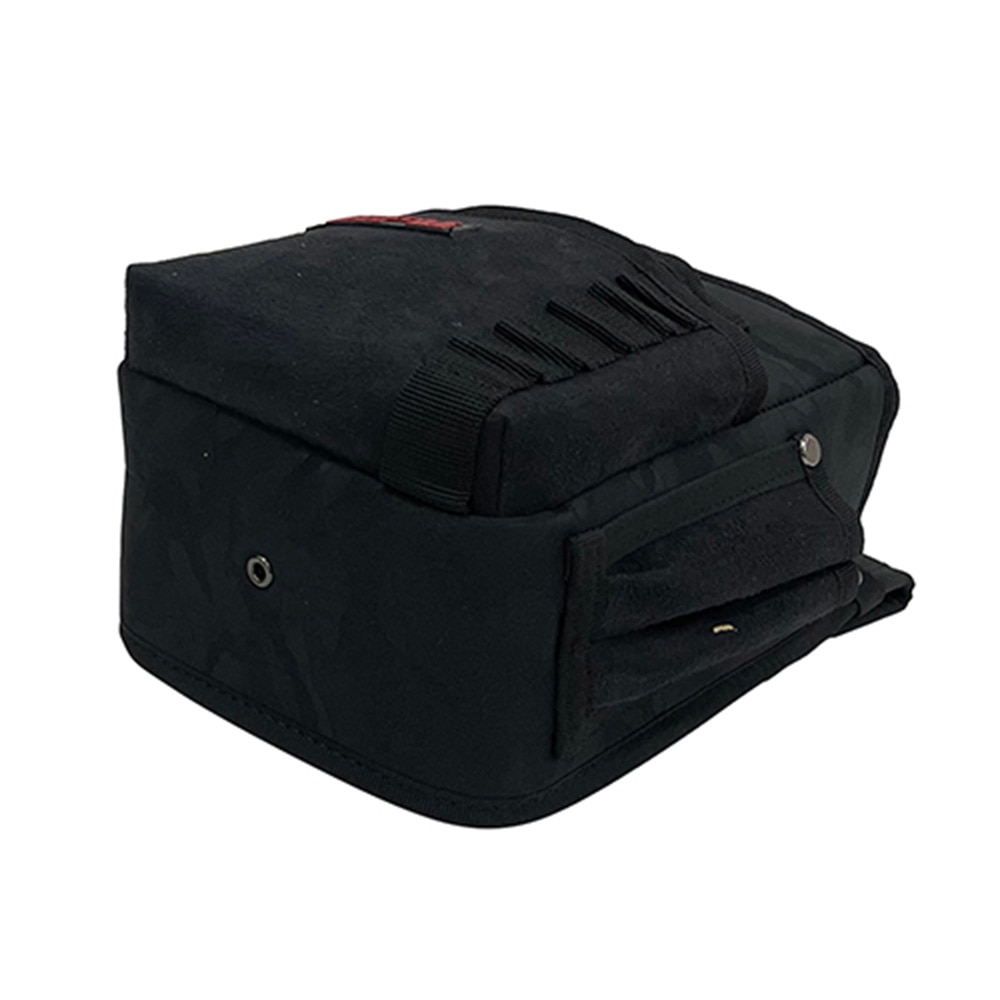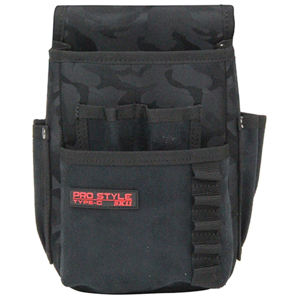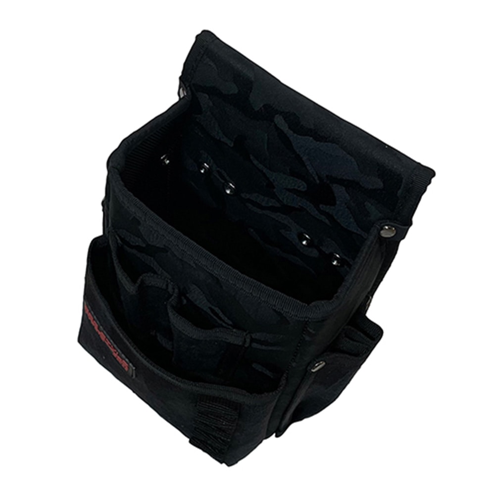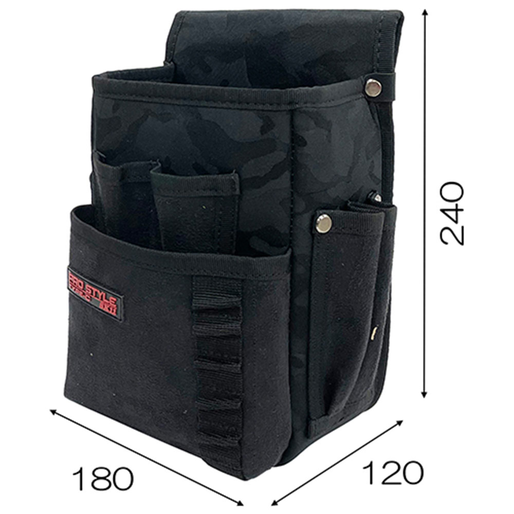 スエード調の素材で迷彩生地の専用設計です。 道具・工具の収納。 肌触りが柔らかなスエード調の素材です。 耐久性に優れ、使い勝手の良い仕様です。 ●サイズ:幅180×高さ240×奥行120mm。 ●60mm幅ベルトまで対応。