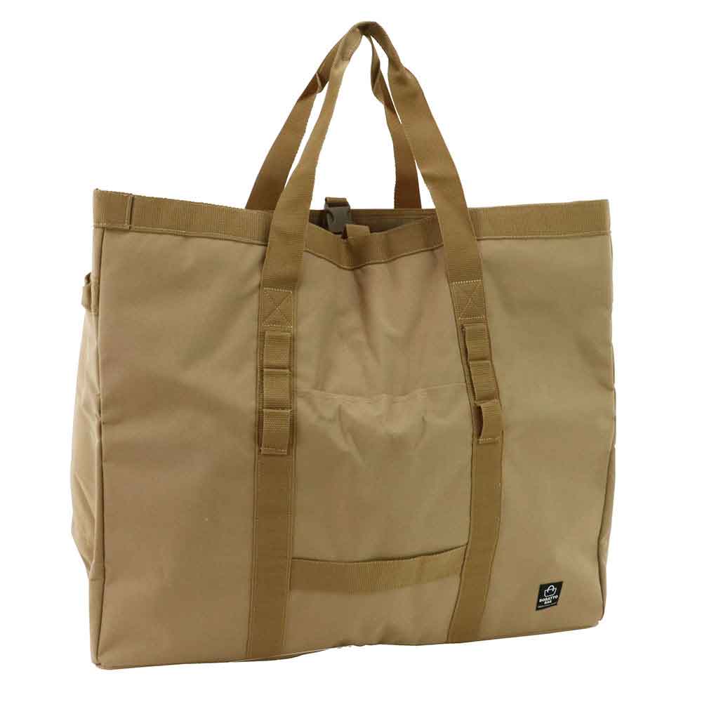 大容量で一括収納、移動も簡単です。 工具、アウトドアギアの収納・持運び。 カラビナなど取り付け可能なベルト付きです。 外側ポケットが2個ついています。 持ち運びに便利なサイド取っ手付きです。 ●カラー:コヨーテ。 ●サイズ:L。