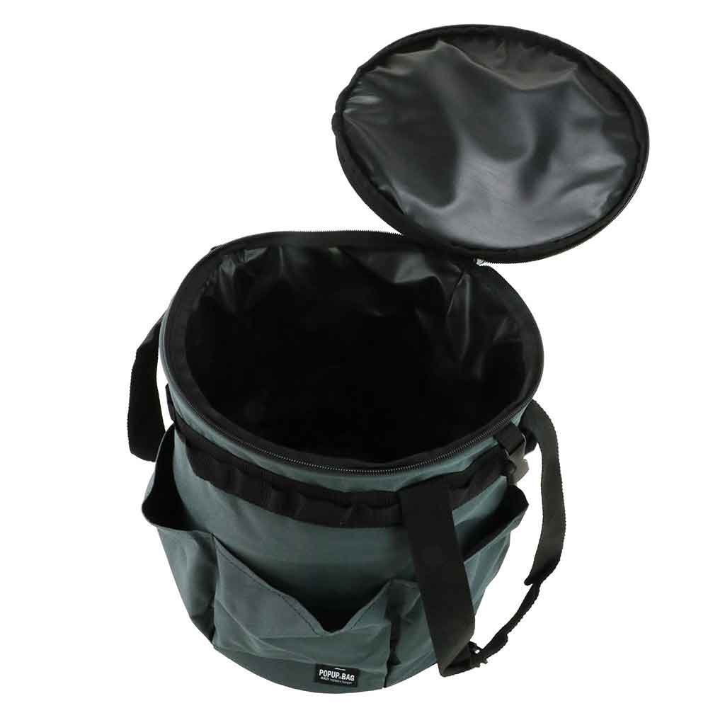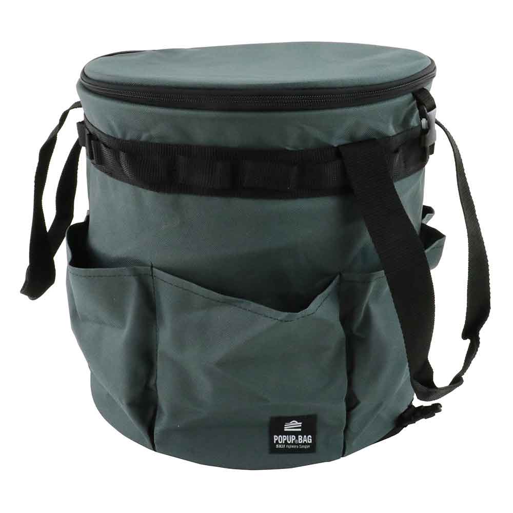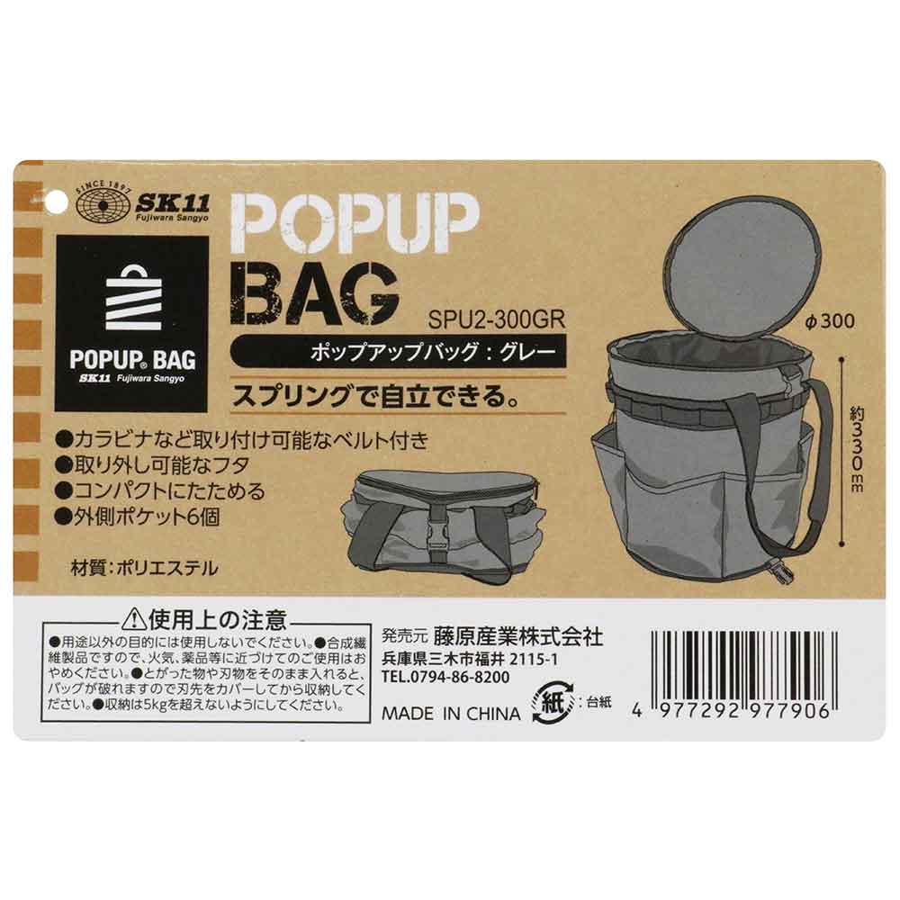 スプリングで自立、コンパクトにたためます。 工具、アウトドアギアの収納・持運び。 カラビナなど取り付け可能なベルト付きです。 取り外し可能なフタです。 外側ポケットが6個ついています。 ●カラー:グレー。