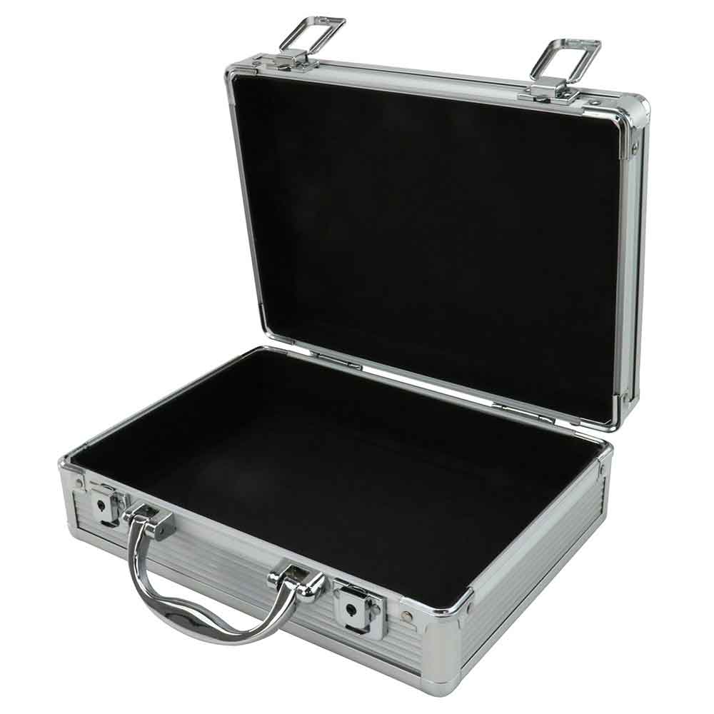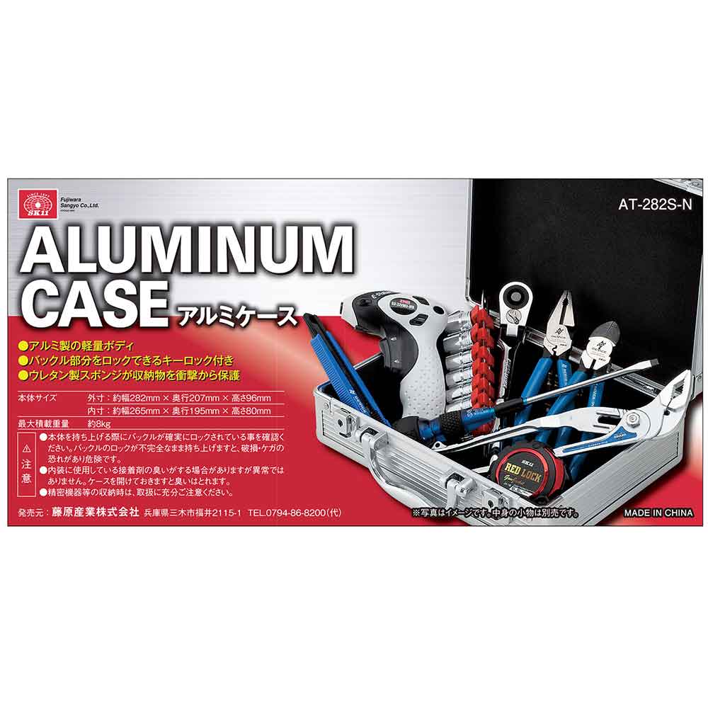 アルミ製の軽量ボディです。 工具の収納に。 バックル部分をロックできるキーロック付きです。 ウレタン製スポンジが収納物を衝撃から保護します。 最大積載は重量8kgです。 ●外寸:(約)幅282×奥行207×高さ96mm。 ●内寸:(約)幅265×奥行195×高さ80mm。