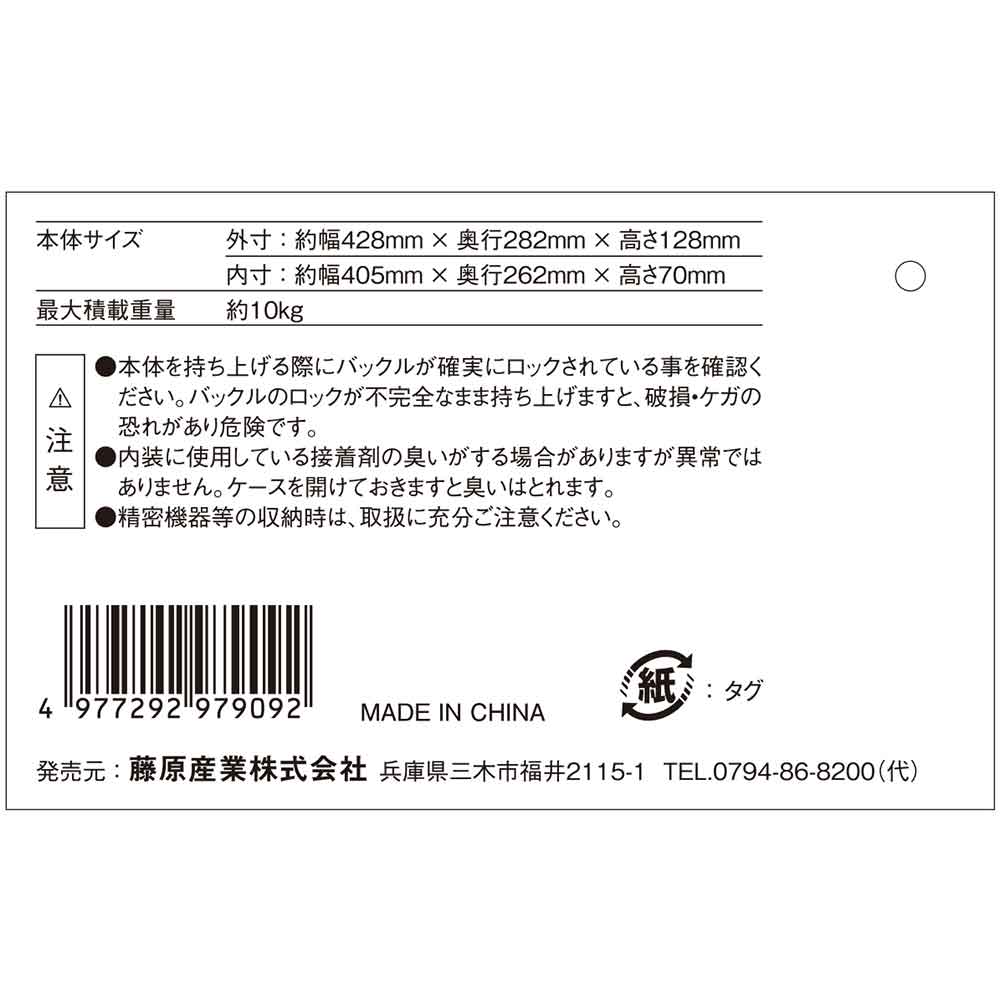 耐衝撃性に優れた軽量ABS素材のケースです。 工具の収納に。 内側の仕切り板は用途に合わせて移動可能です。 フタ裏側に便利なポケット付きです。 最大積載は重量10kgです。 ●外寸:(約)幅428×奥行282×高さ128mm。 ●内寸:(約)幅405×奥行262×高さ70mm。