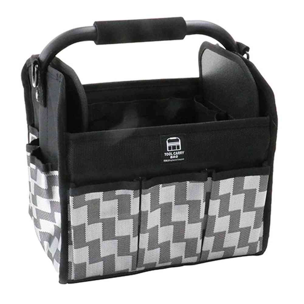 道具・工具の持ち運びに便利なツールキャリーバックです。 道具・工具の収納。 コンパクトサイズで持ち運びラクラクです。 ●色:グレー。 ●サイズ:S。