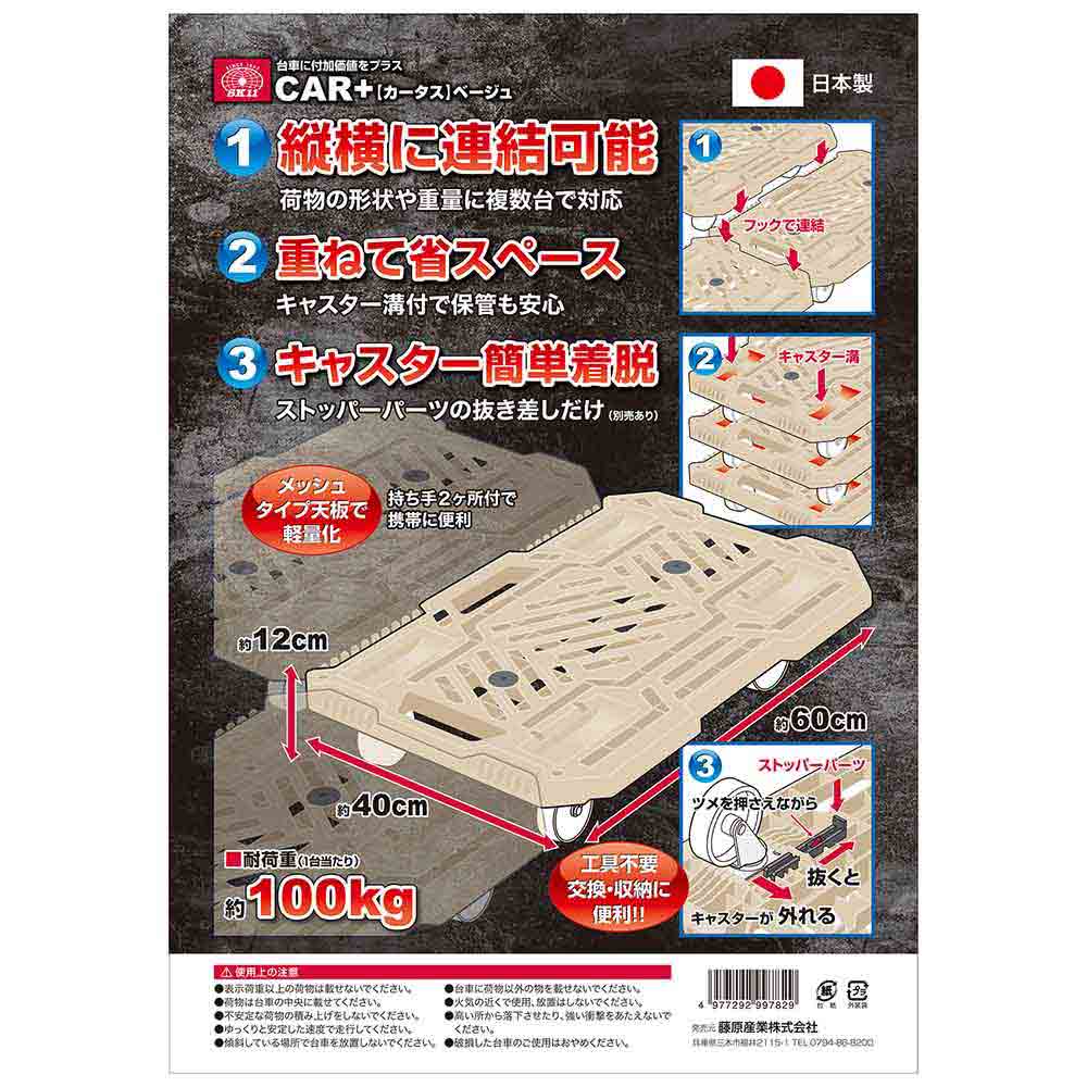 縦横連結可能な軽量タイプです。 荷物の運搬。 縦横に連結可能です。 保管は重ねられるので省スペース保管が可能です。 キャスターの交換が可能で、しかも簡単に脱着できます。 ●耐荷重役:100kg。 ●自重:約2.2kg。