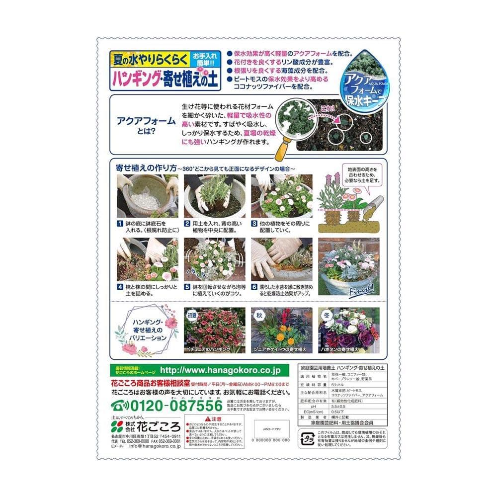 軽量で保水効果の高いハンギング専用土。花付きを良くする元肥を配合済み。