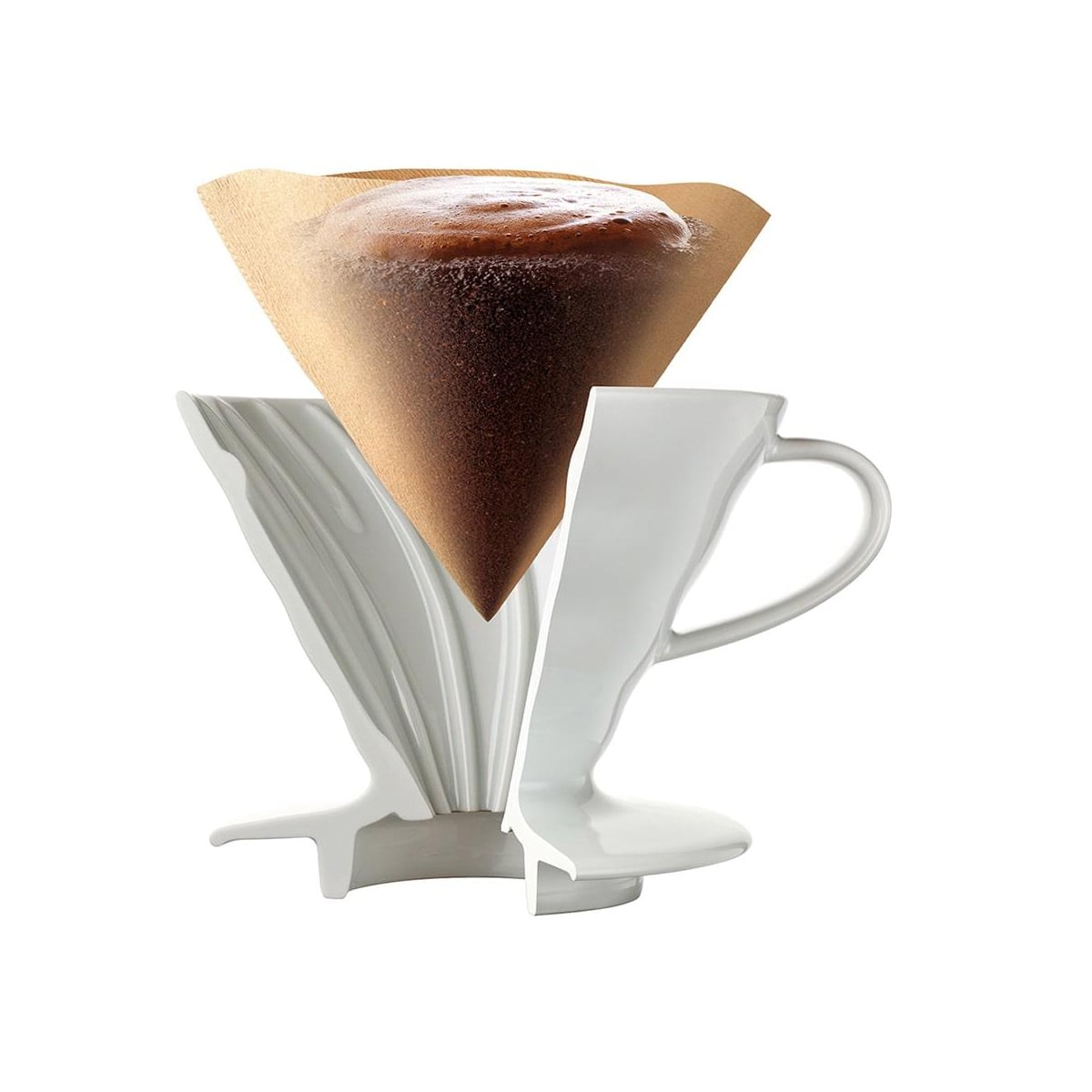 ハリオのV60シリーズ円すい形ペーパーフィルター02タイプ(1~4杯用)です。 材質はパルプ100%です。