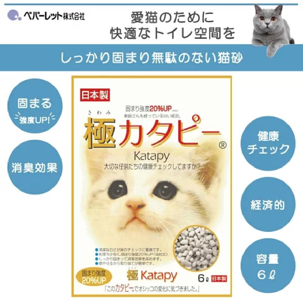 清潔な白さが尿のチェックに最適。固まり強度当社比20パーセントアップ。燃やせる紙砂