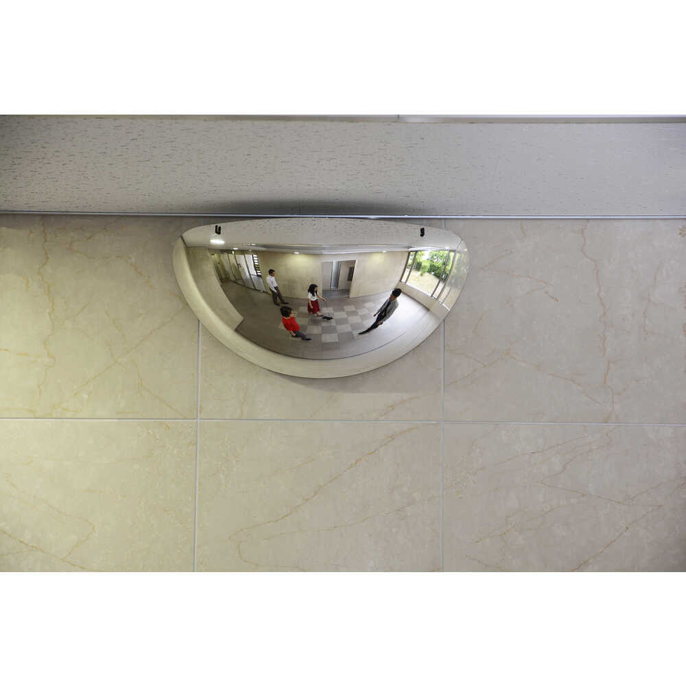 ●T字路での衝突防止などの安全対策や、店舗・施設での防犯・盗難対策見守りなどのにご使用いただけます。●ポリカーボネート製のため、衝撃に強く、軽量で、破損しにくいです。●幅(mm):475●奥行(mm):約147●高さ(mm):275●像大きさ(曲面R):縦:220、横:340●取付方法:ビス●形状:1/4球型(1/2ドーム型)●色:鏡●取付場所:壁面、T字路 質量518g