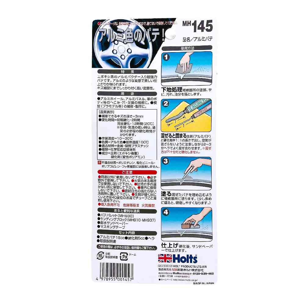エポキシ系のアルミバウダー入り超強力パテです。 アルミのような質感で美しい仕上がりが得られます。 キズ細部にまでしっかり付く高い密着性。