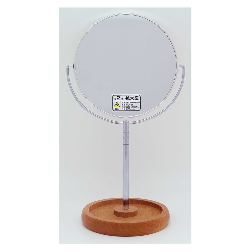 鏡 ミラー 卓上鏡 スタンドミラー 両面鏡 化粧鏡 メイク 2倍 拡大鏡 アルミフレーム 天然木 木製台 シルバー 日本製