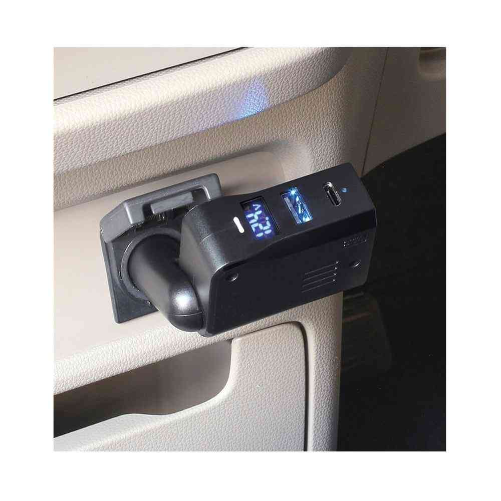 ●車のバッテリー状態をLEDの色で確認することができます。 ●USB TYPE-AポートとUSB TYPE-Cポートを搭載しています。 ●機器に合わせて、最適な電流を供給して充電するUSB自動判別機能付きです。 ●アクセサリー電源ソケットに挿し込むだけで使用できます。 ●本体の角度を最大約180°まで変えて使用可能です。 ●ヒューズ付き。(内蔵) ●USB TYPE-A最大許容出力電流:約2.4A ●USB TYPE-C最大許容出力電流:約3A