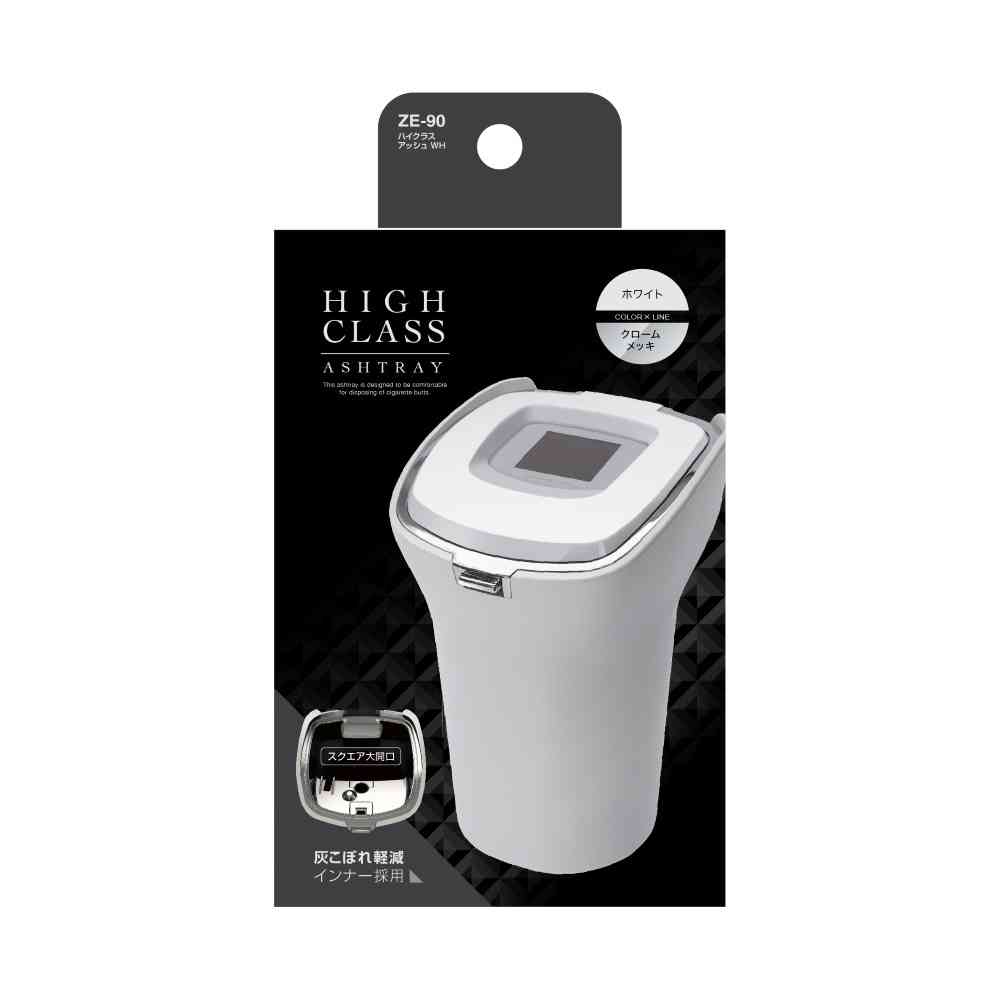 ヤック、ハイクラス、アッシュ、ホワイト、灰皿、LED、ソーラー、ワンプッシュ、丸洗い、車、ZE90