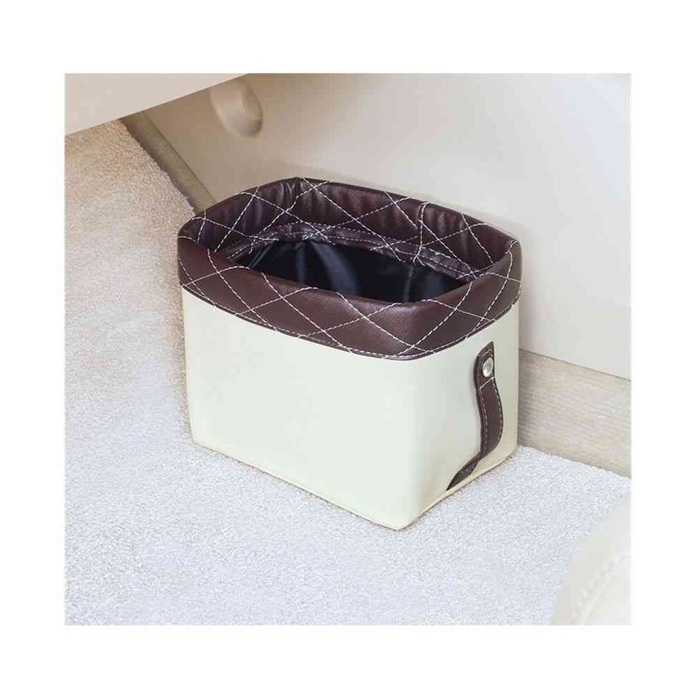 ●ホワイトのラティスステッチが大人可愛いゴミ箱。 ●内装がラテカラー系の車によく合う、甘すぎないガトーブラウン×オフホワイト。 ●ゴミ袋を両サイドのベルトで固定でき、見た目もすっきり。 ●500mlペットボトルが3本入る。 ●小物入れとしても使える。 ●フロアマットに置くだけの底面マジックテープ固定式。