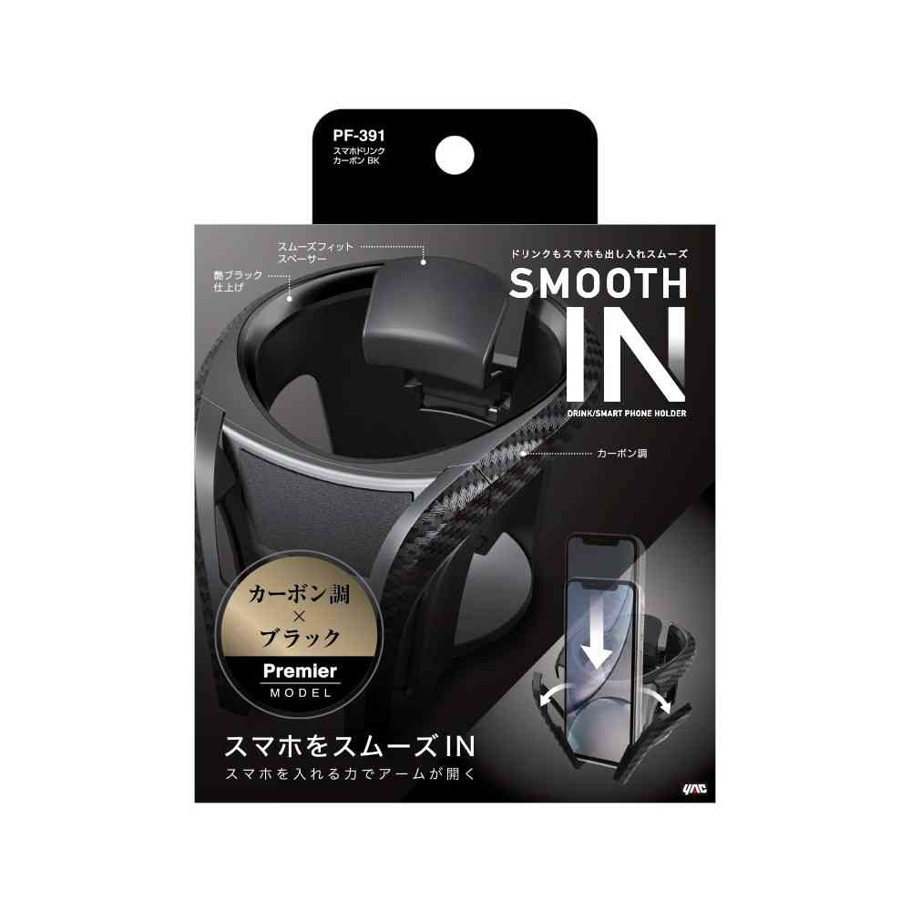 ヤック、スマホ、ドリンク、ドリンクホルダー、エアコン、保冷、保温、簡単装着、スマートフォン、スムーズ、カーボン、ブラック、PF391