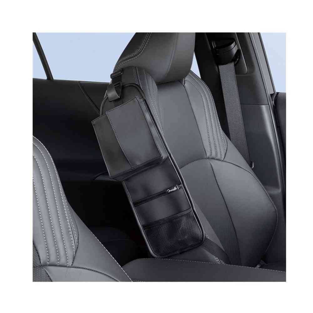 ●上質レザー調の小物がまとめて収納できるポケットです。 ●スマートフォンやソフトパックティッシュが入る多機能ポケット+小物ポケット×2付きです。 ●シートのショルダー部にフィットする形状+裏面のすべり止めによってずれにくくなっています。 ●荷物(1kgまで)を引っ掛けられるフック付きです。
