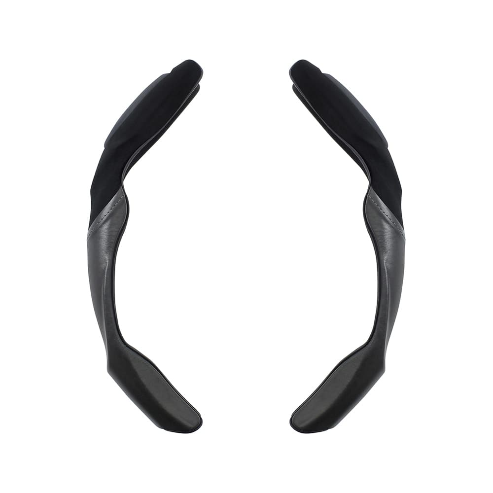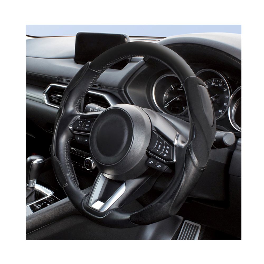 ●新形状のセパレート型のグリップカバーです。 ●愛車のハンドルを生かしながら握り心地を良くします。 ●軟質ベースと立体グリップの2層構造です。それぞれを重ねるようにかぶせるだけで簡単に取り付けできます。 ●落ち着いた内装にマッチする黒スエード×レザー調×グレーステッチ加飾です。 ●適合サイズ:ハンドル直径35.0~37.9cm