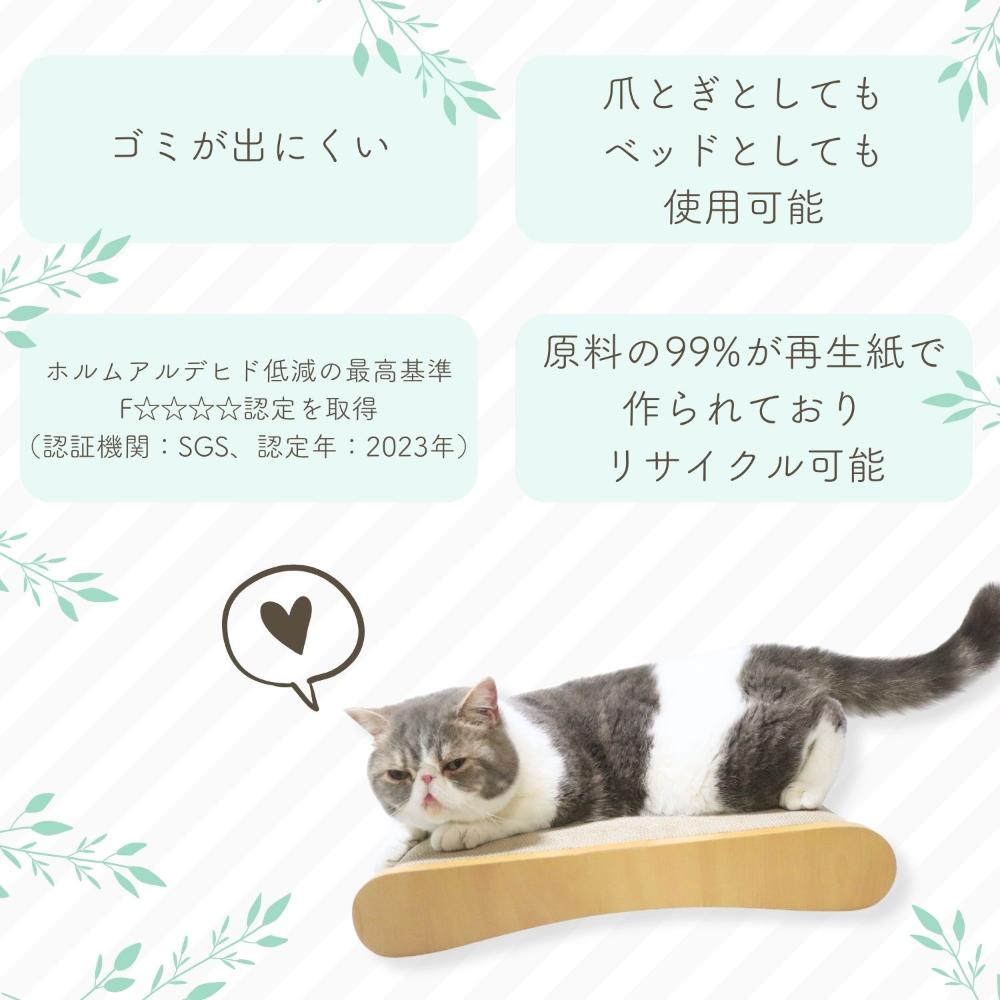 ・爪とぎとしてもベッドとしても使用可能な猫用つめとぎベッド。 ・爪とぎの目が細かくゴミが出にくいのが特長。 ・裏面も使用可能なので長くご利用いただけます。 ・質の高い再生紙を使用し、環境にも配慮した商品です。原料の99%が再生紙で作られておりリサイクル可能です。 ・Mサイズは小さめネコちゃん用です。 ・本商品はホルムアルデヒド低減の最高基準のF☆☆☆☆認定を取得しています(認証機関:SGS、認定年:2023年)。