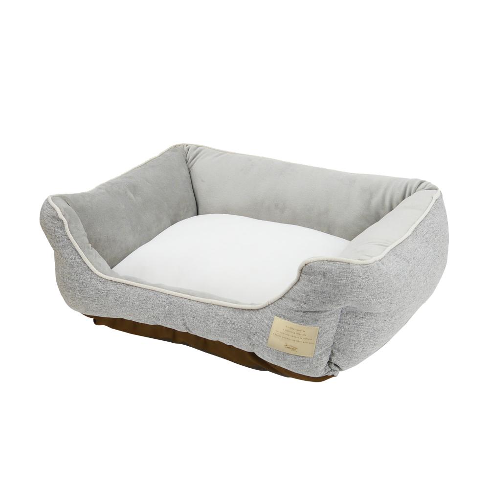 ・1年を通して使いやすい生地のスクエアベッドです。 ・インテリアに馴染みやすいデザインと色合いになっています。 ・内生地は手触りがよくオールシーズンで使えるふんわり短毛生地で、外生地は織生地です。 ・中型犬におすすめ。