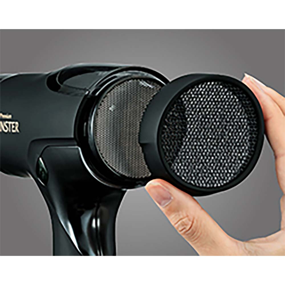 ●電源:AC100V50/60Hz ●消費電力:1300W ●イオン:マイナスイオン×5 ●風速:約46m/s(時速換算 約166km/h、集風器なし) ●メインスイッチ:HOT-COOL-OFF ●その他スイッチ:モード切替ボタン ●モード切替:ホット/温冷自動切替/スカルプ ●風量調節:5段階 ●その他機能:フレックスノズル、着脱式吸込口カバー ●サイズ:約177(W)×73(D)×204(H)mm(集風器含まず) ●質量:約550g(集風器含まず) ●コードの長さ:約1.7m ●付属品:集風器