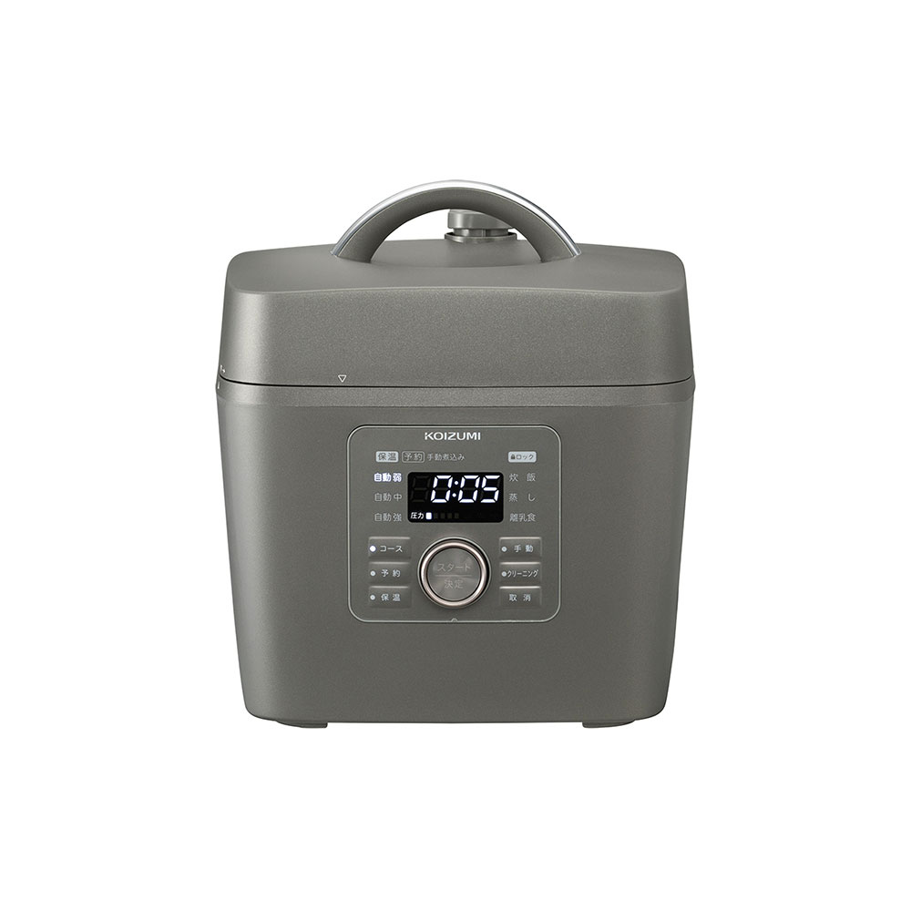 ●電源:AC100V 50/60Hz ●消費電力:700W ●機能:圧力調整:5段階 ●機能:予約:○ ●機能:自動メニュー:6種類 ●機能:保温:○ ●満水容量:約2.5L ●調理容量:約1.6L ●炊飯容量:最大3.5合 ●付属品:電源コード、計量カップ、おたま、しゃもじ、レシピブック、蒸し台 ●コードの長さ:約1.0m