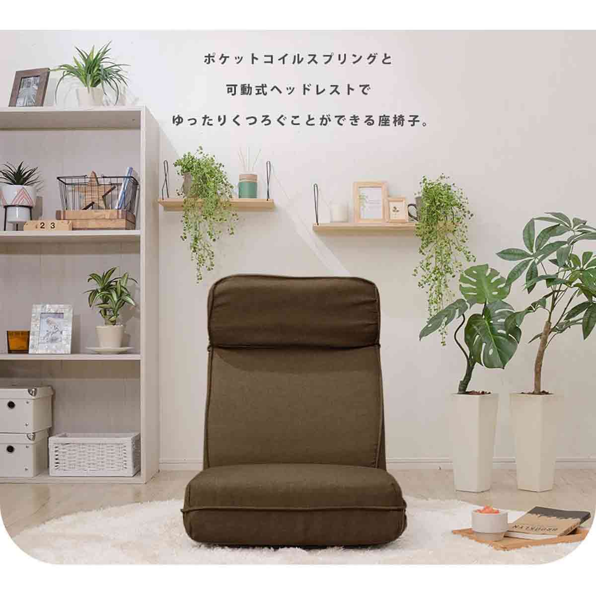 体にフィットし、ふんわりと包まれるような快適な座り心地の座椅子。頭部稼働で座面にはポケットコイル搭載。重量約6kg。