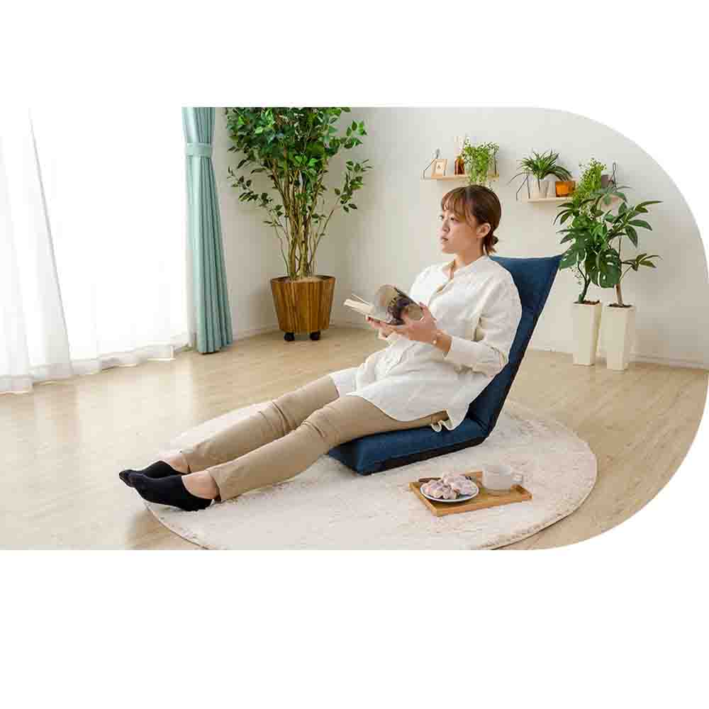 ハイバックとリクライニングでゆったりくつろぐことができる座椅子。 本体重量4.8kg 背もたれは14段階リクライニング