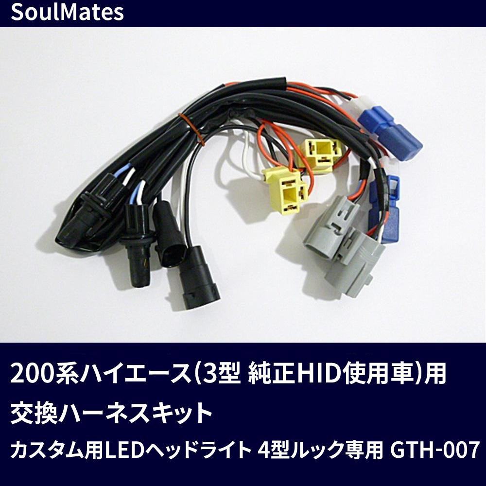 交換ハーネスキット カスタム用LEDヘッドライト 4型ルック専用 GTH-007 「カスタム用LEDヘッドライト4型ルック」専用ハーネスキット!! 200系ハイエース(3型 純正HID使用車)に、「SoulMates 200系ハイエース(1・2・3型用) カスタム用LEDヘッドライト 4型ルック(品番:GTH-004、GTH-005)」を顔面移植する際に必要な交換ハーネスキットです。