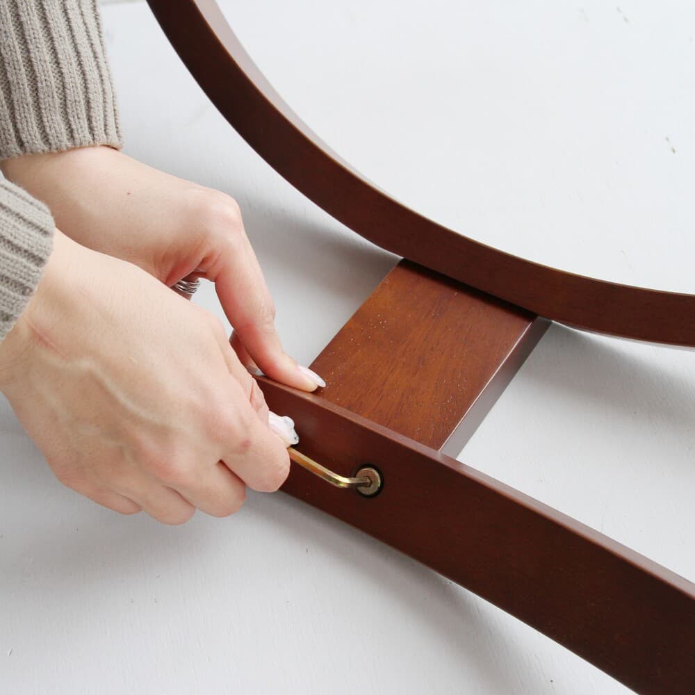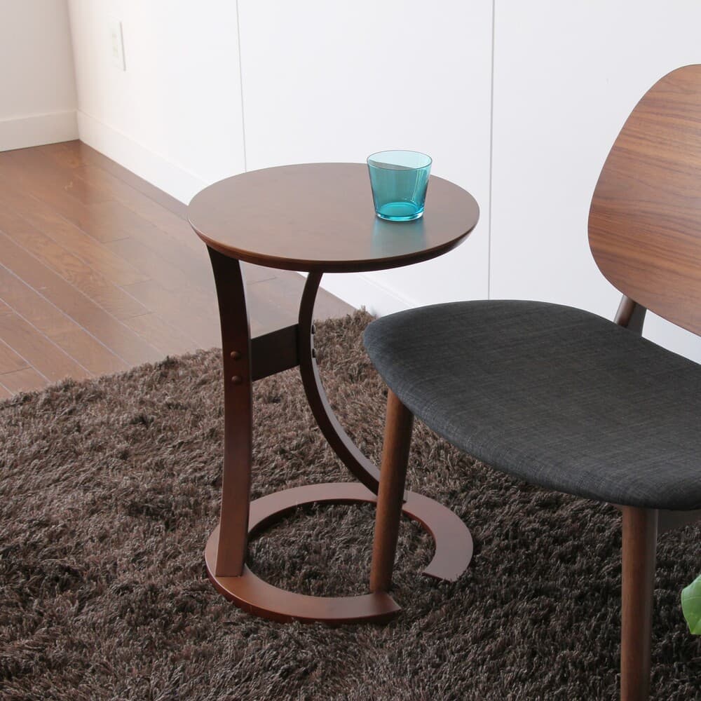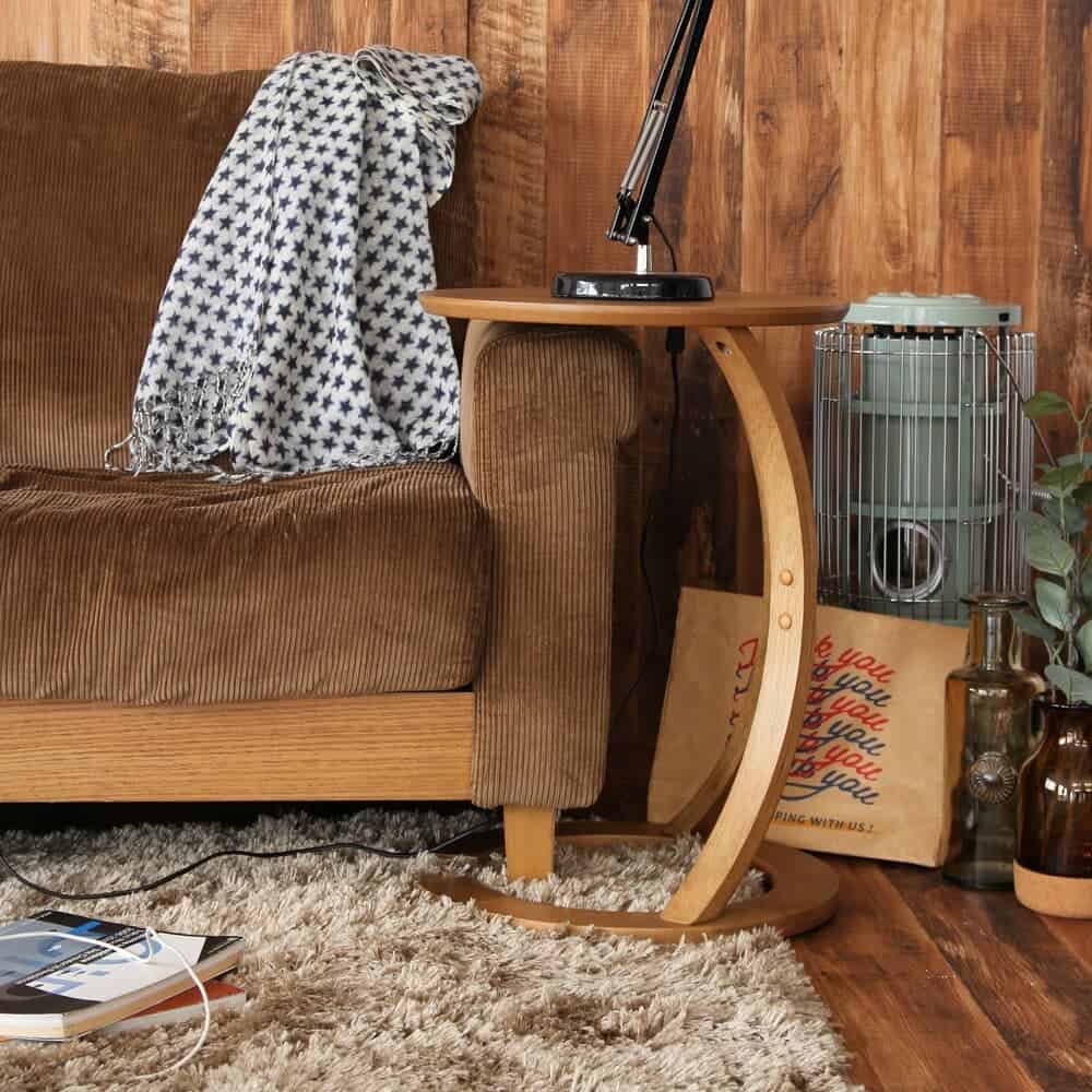 C字型の脚がソファの下にスッと入り、テーブルをぐっと手元まで。 くつろぎの時間を、もっと快適にしてくれるサイドテーブルです。 天板下の高さは約53cm。ソファー肘の高さがこれ以下であれば、 スッと差し込むことが可能です。