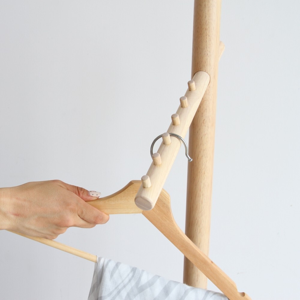 フック・支柱:天然木(ラバーウッド).土台:合成樹脂化粧繊維板(メラミン)