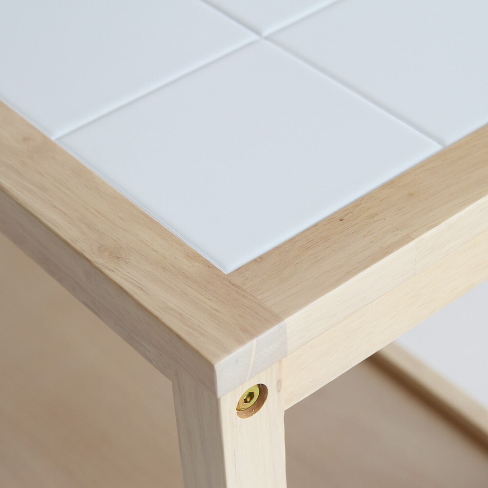 ネジ及びボルトを締め終える際に、力を入れ過ぎると木の繊維がつぶれ、ネジ及びボルトが空回りする原因となることがあります。 また、ネジを締め付ける際に斜めにねじ込むと部材が割れる原因となることがありますのでご注意ください。 木製部分には熱いものを置かないでください。 タイルの性質上、熱いものを置いた部分がしばらく熱いままの場合があります。 天然木を使用していますので、多少、色の濃淡や節があります。 直射日光の当たる場所、火気や暖房器具の近くで使用しないでください。 変色・変形・破損・火災の原因となることがあります。