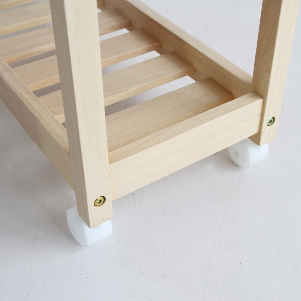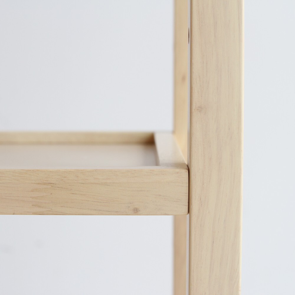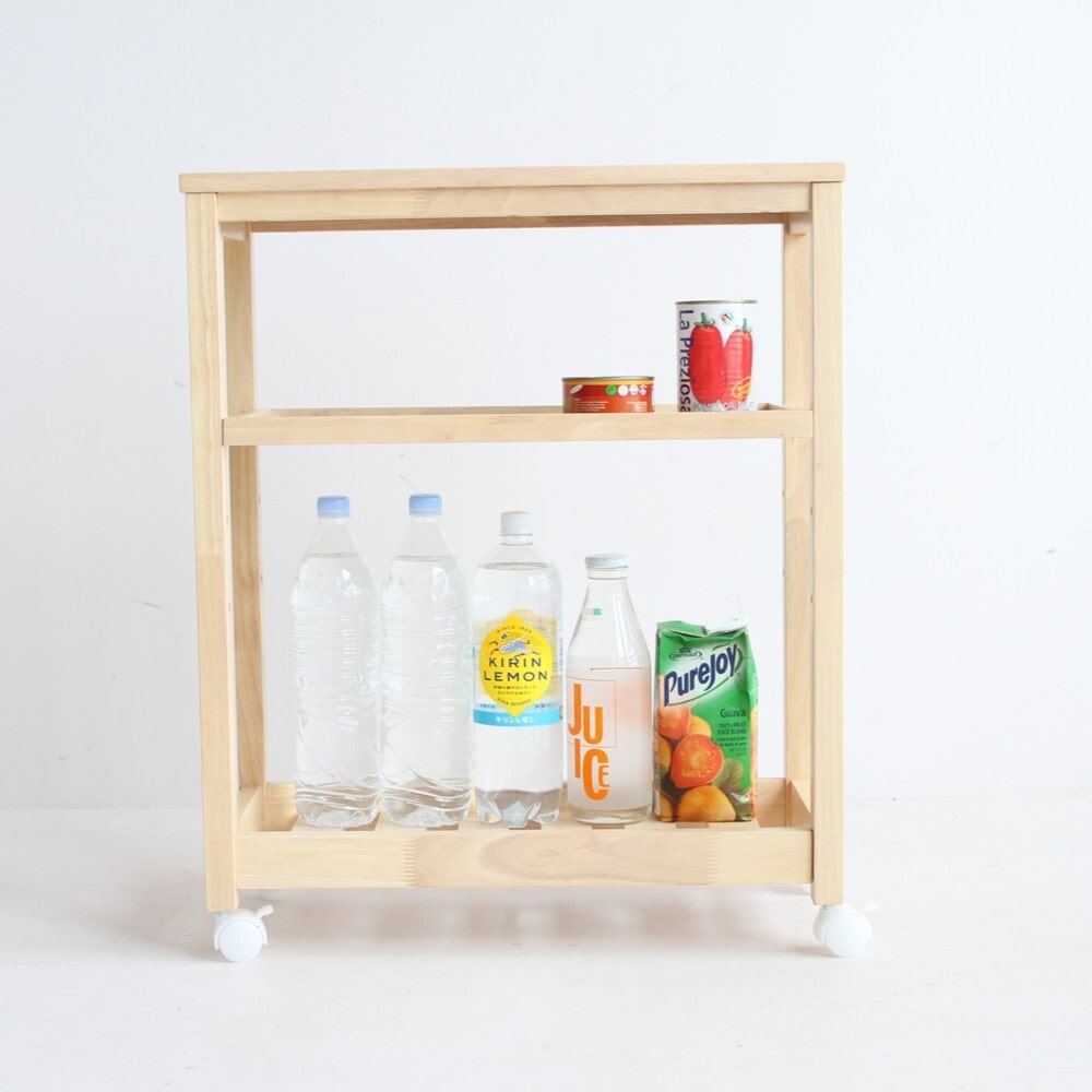 スキマに収納したり、キッチンの作業台として使いやすいワゴンです。 天板には熱に強いタイルがはめ込まれていて、簡易的にお鍋やマグカップを置くのに便利です。 水や汚れがついても落としやすく、お手入れも簡単です。 白くてツヤのあるタイルはデザインのアクセントにもなっています。 棚板は三段階に高さ調整できます。 収納したいものに応じて位置を変えることで、スペースを無駄なく活用できます。