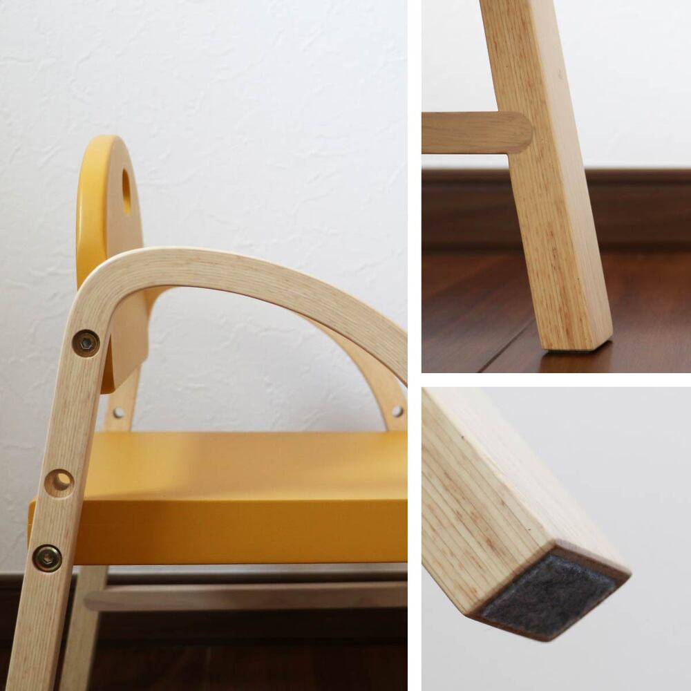 インテリアに馴染みつつ、子どもらしいポップな雰囲気も感じさせる絶妙な色合い。 少しでも長く大切に使ってもらうために、座面の高さを調整できるよう設計しました。 2~4歳頃のお子様の体格に合わせた高さになっています。
