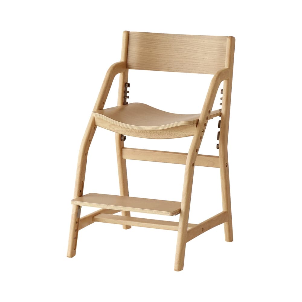 7段階の高さ調整ができて 正しい姿勢を保てるダイニング学習椅子です。 1200人の子どもの体型調査を行い、どの身長でもほとんど 全ての子どもの体型に合う寸法に設計された学習椅子です。