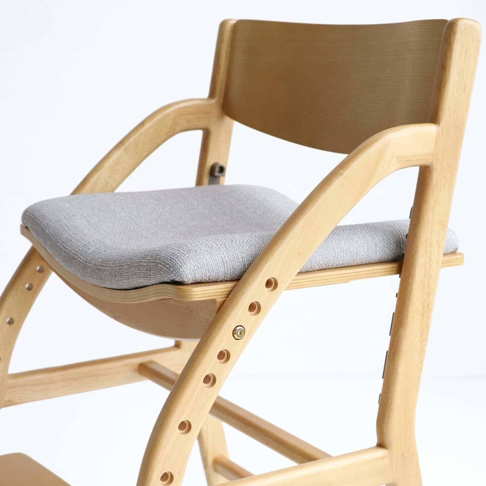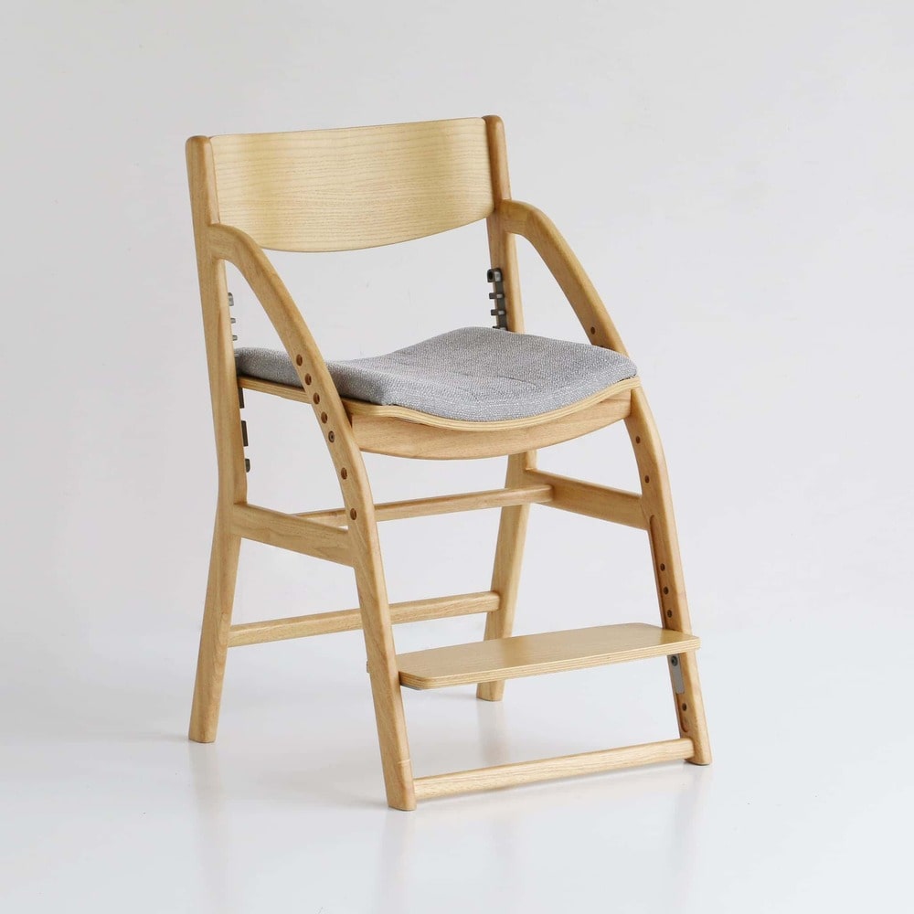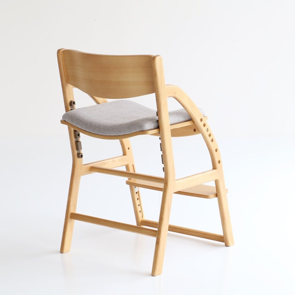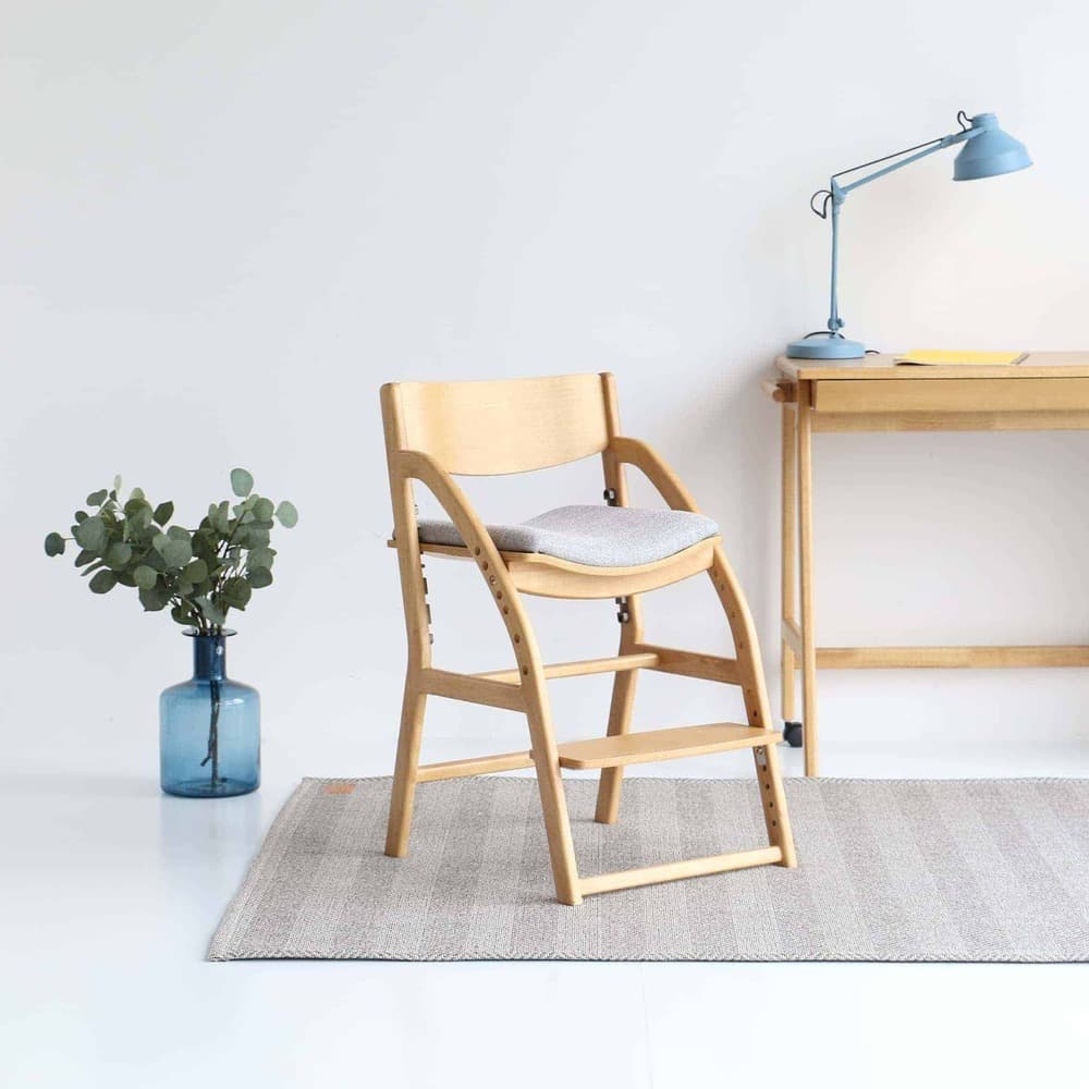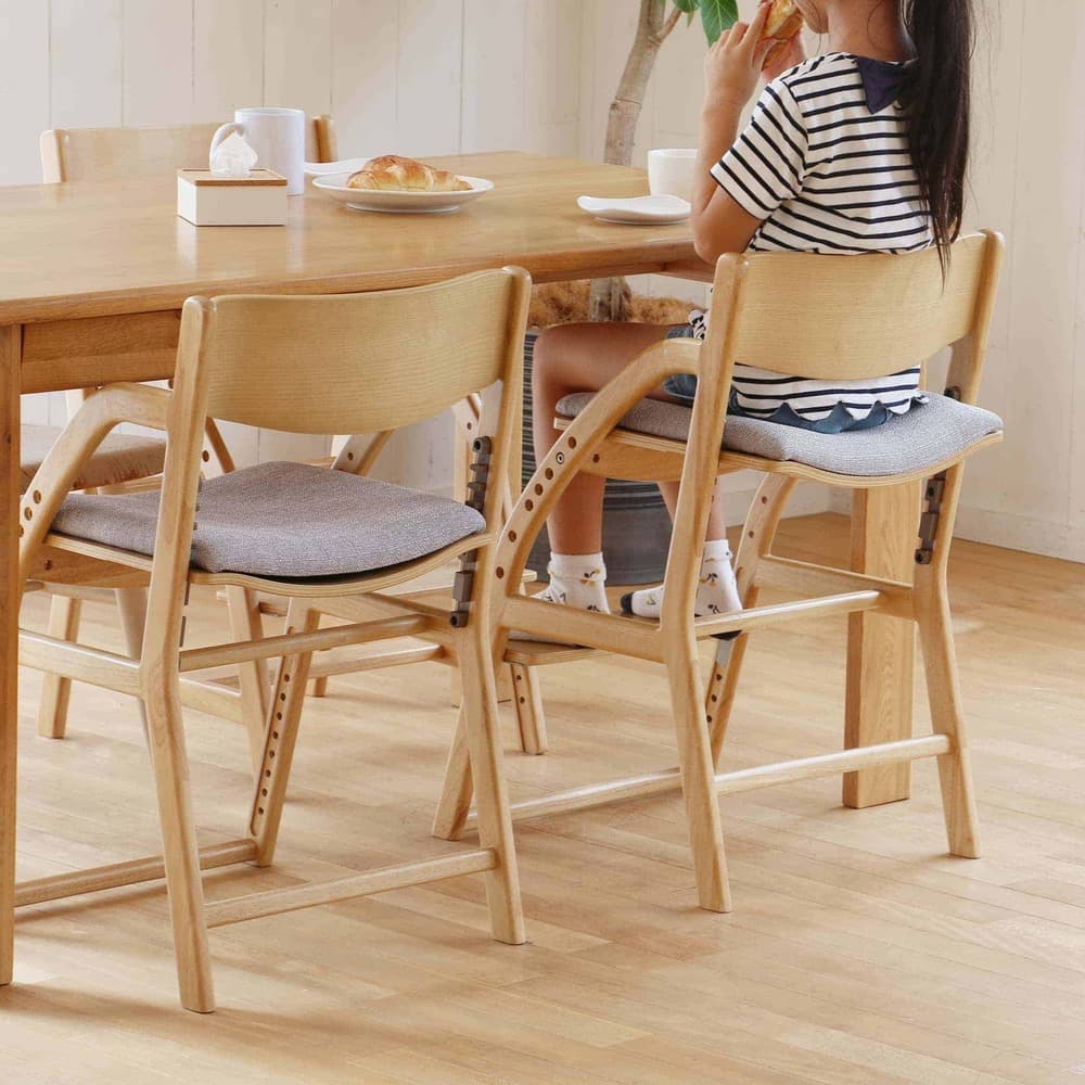 7段階の高さ調整ができて 正しい姿勢を保てるダイニング学習椅子です。 1200人の子どもの体型調査を行い、どの身長でもほとんど 全ての子どもの体型に合う寸法に設計された学習椅子です。