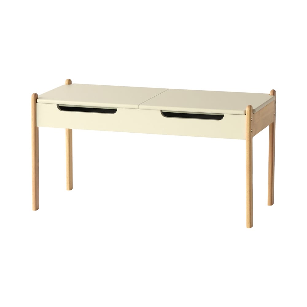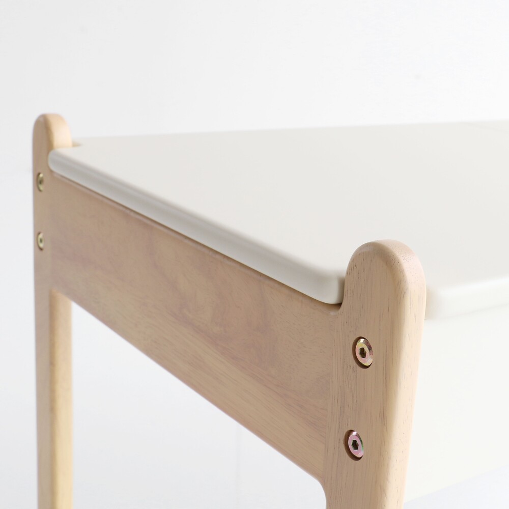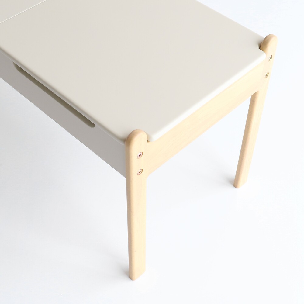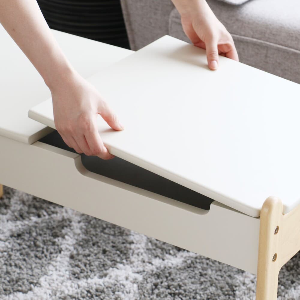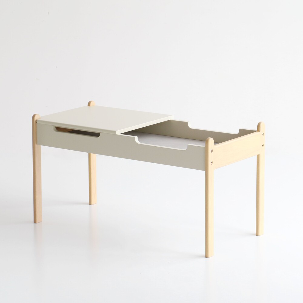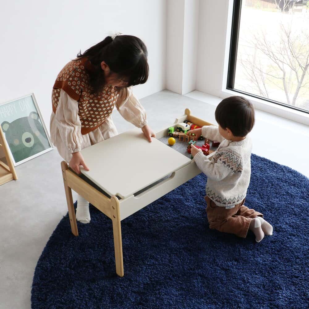 ブロック遊びやごっこ遊び、絵本からお勉強まで。 成長や興味に合わせて使い方が変わる、長く寄り添えるテーブルです。 天板蓋をするとデスクとしても使えます。