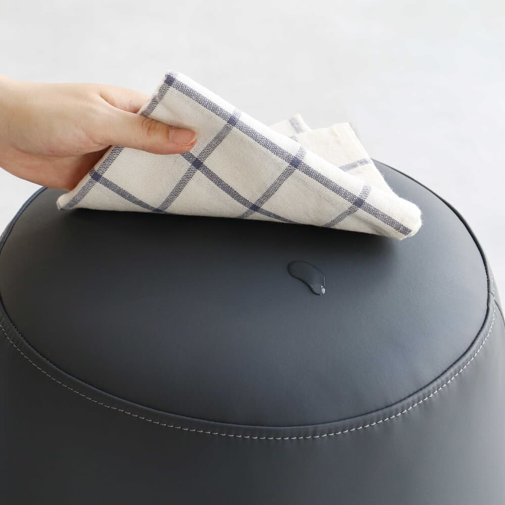 耐汚染性・耐水性に優れた素材を採用しており、万が一汚れてしまってもサッとひと拭きするだけで、簡単にお手入れが可能です。 日々のお掃除やメンテナンスの負担を軽減し、長く清潔にお使いいただけます。 本体重量は約3kgと非常に軽量な設計。 女性でも簡単に持ち運ぶことができるため、お掃除の際や模様替え、急な来客時などの移動もスムーズでストレスを感じさせません。 また、脚部には樹脂製のアジャスターを採用しました。床やフローリングへの傷つきを防ぐとともに、設置場所に合わせて微調整ができるため、ガタつきを抑えた安定した座り心地を提供します。