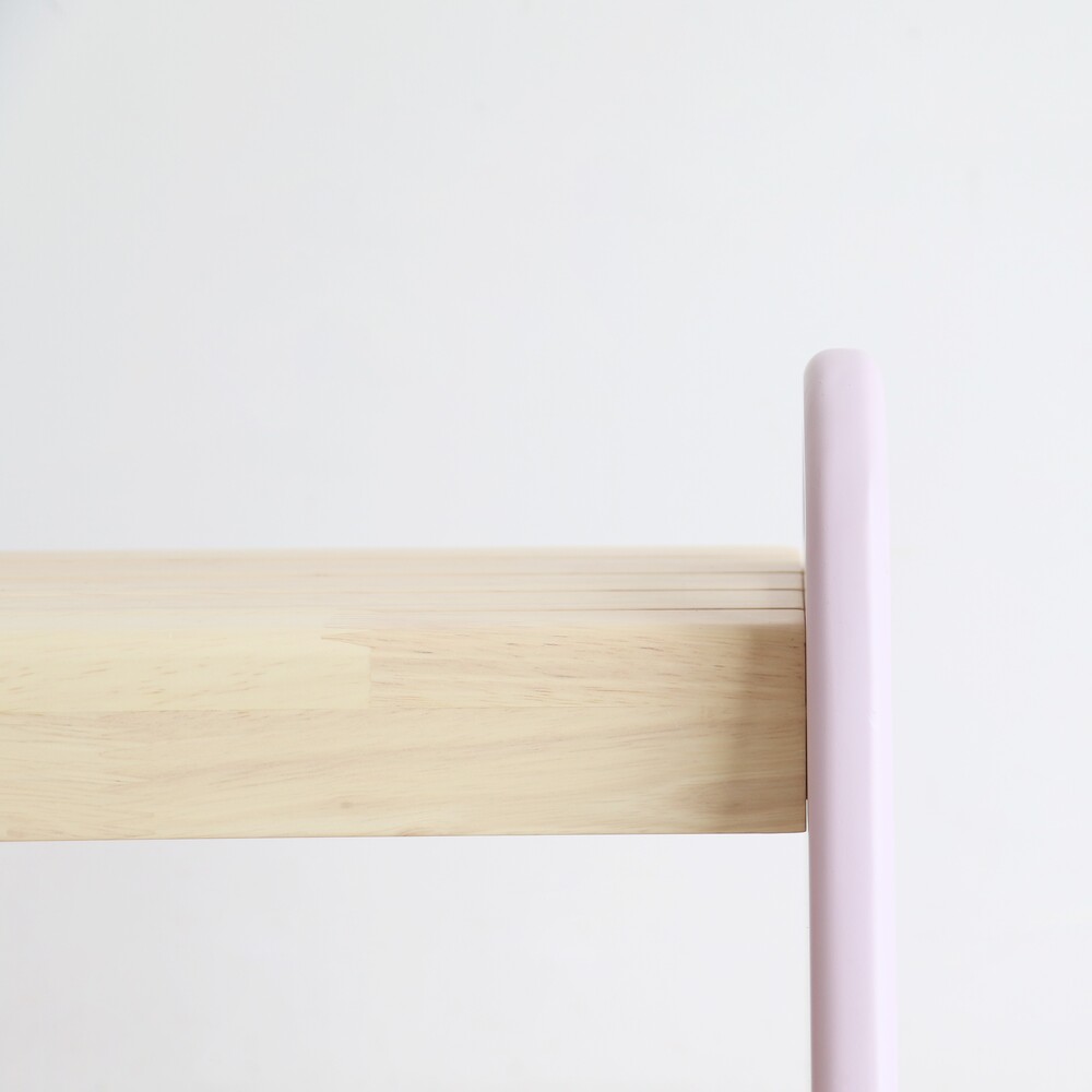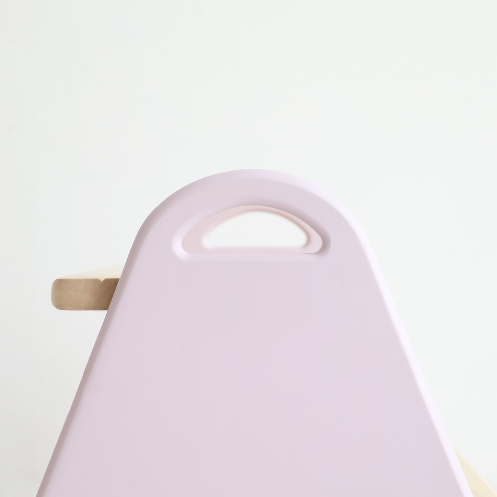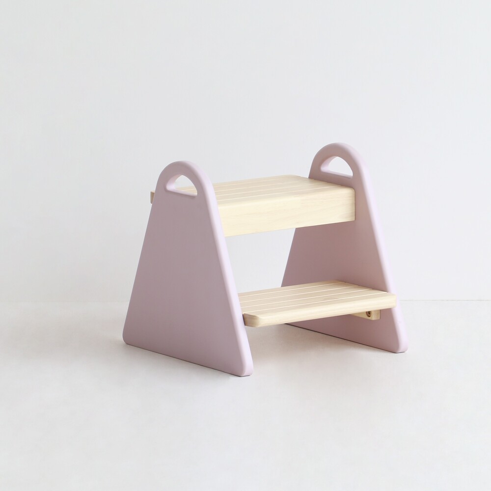 お子さまが毎日使うものだからこそ、安心してお使いいただけるよう 丁寧に設計・製造しています。 角を丸く仕上げたやさしいフォルム、安定感のある構造、丁寧な仕上げ。 三角の形は、見た目の可愛さだけでなく安定感も生み出しています。 踏み板の前の方に足をかけてもグラつかず、倒れる心配もありません。 滑りにくいように、踏み板にはスリット加工を施しています。 乗るときも降りる時も安心して使用していただけます。