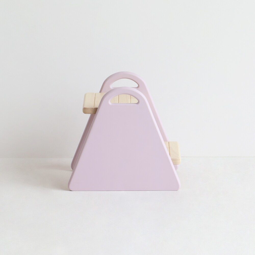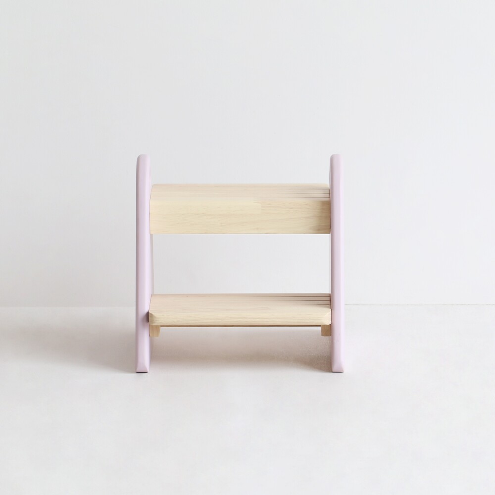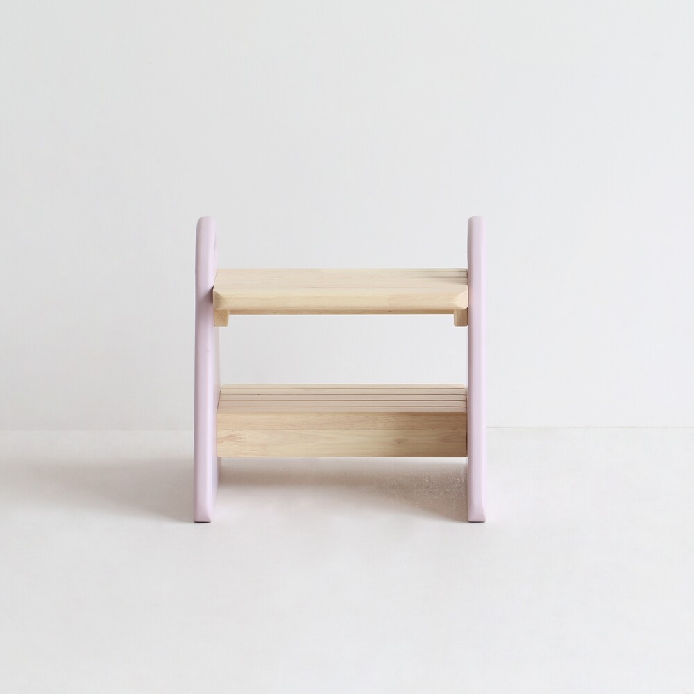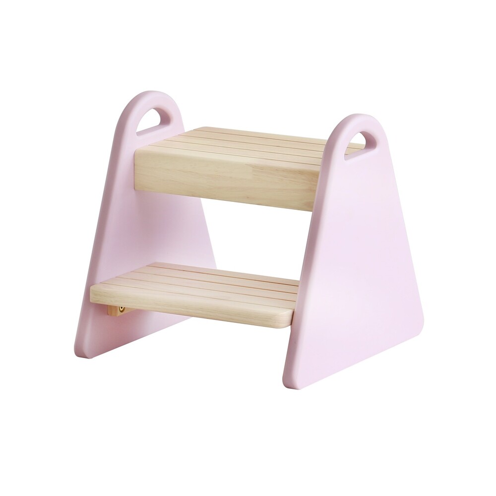 お子さまが毎日使うものだからこそ、安心してお使いいただけるよう 丁寧に設計・製造しています。 角を丸く仕上げたやさしいフォルム、安定感のある構造、丁寧な仕上げ。 三角の形は、見た目の可愛さだけでなく安定感も生み出しています。 踏み板の前の方に足をかけてもグラつかず、倒れる心配もありません。 滑りにくいように、踏み板にはスリット加工を施しています。 乗るときも降りる時も安心して使用していただけます。