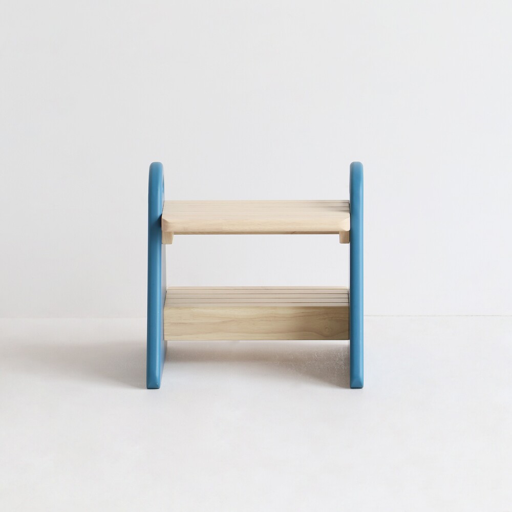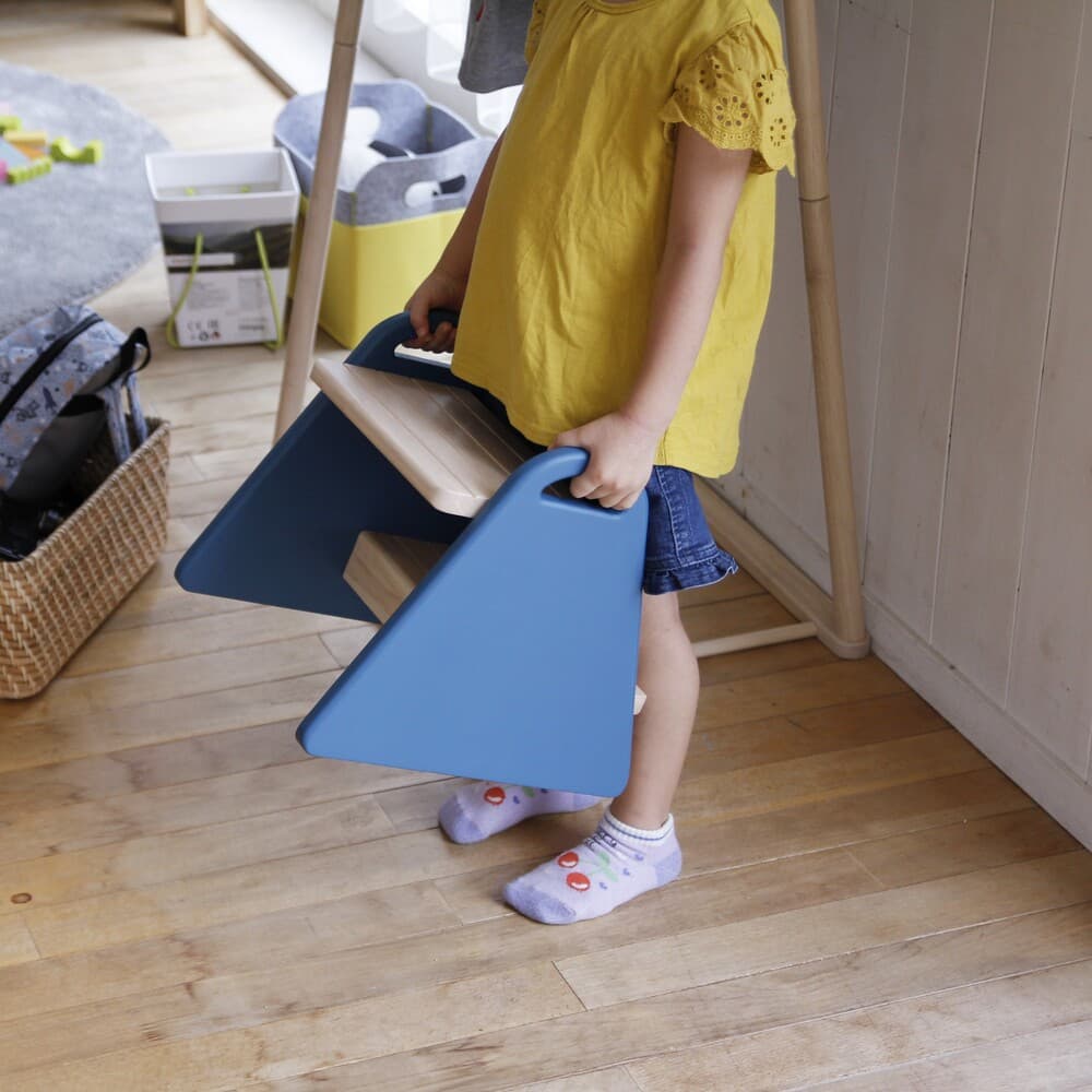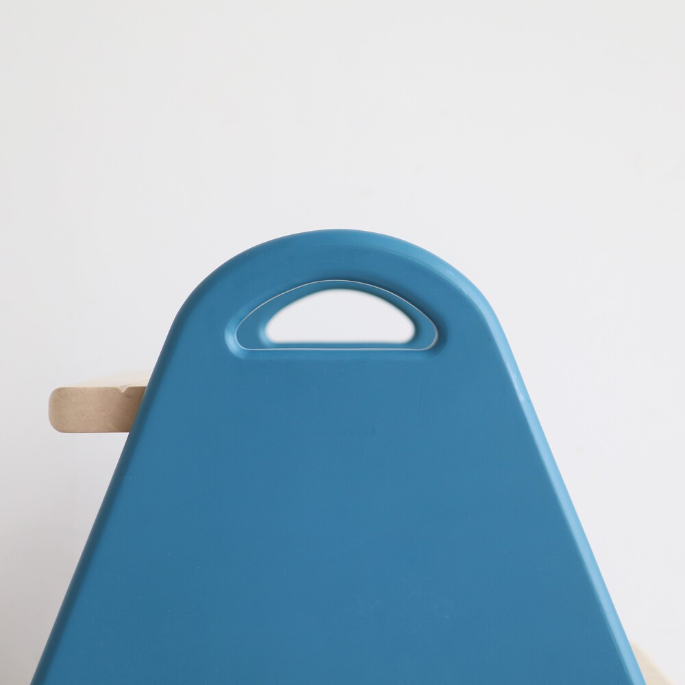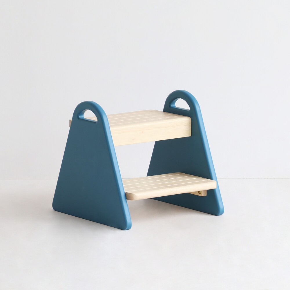 お子さまが毎日使うものだからこそ、安心してお使いいただけるよう 丁寧に設計・製造しています。 角を丸く仕上げたやさしいフォルム、安定感のある構造、丁寧な仕上げ。 三角の形は、見た目の可愛さだけでなく安定感も生み出しています。 踏み板の前の方に足をかけてもグラつかず、倒れる心配もありません。 滑りにくいように、踏み板にはスリット加工を施しています。 乗るときも降りる時も安心して使用していただけます。
